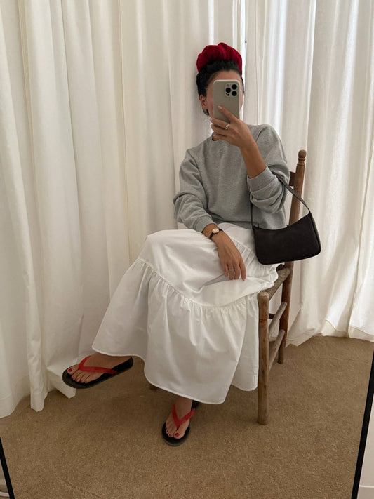 The MiMi Silk Cotton Voile Skirt in WhiteRegular price $198.00 USDRegular priceUnit price / per-