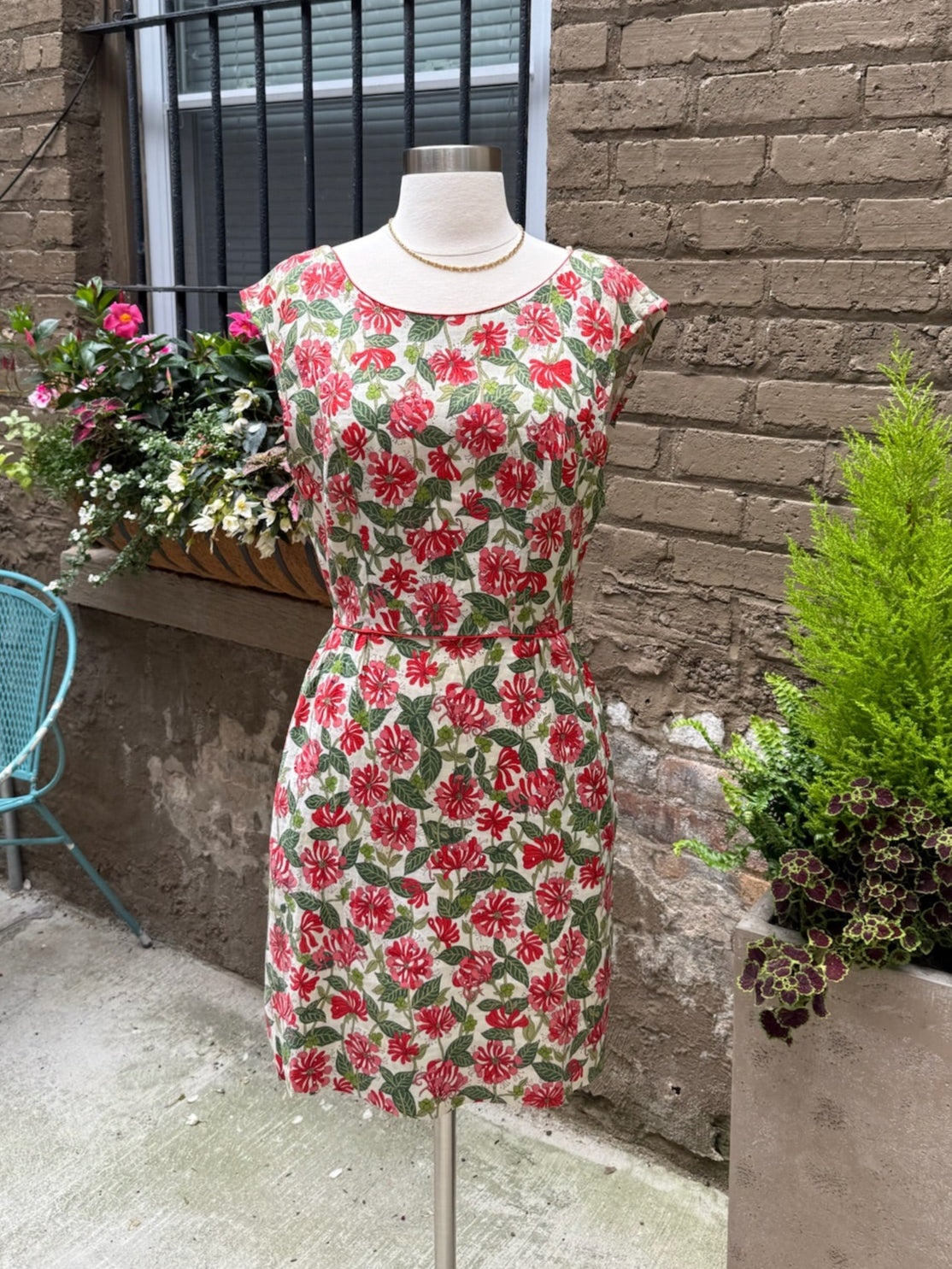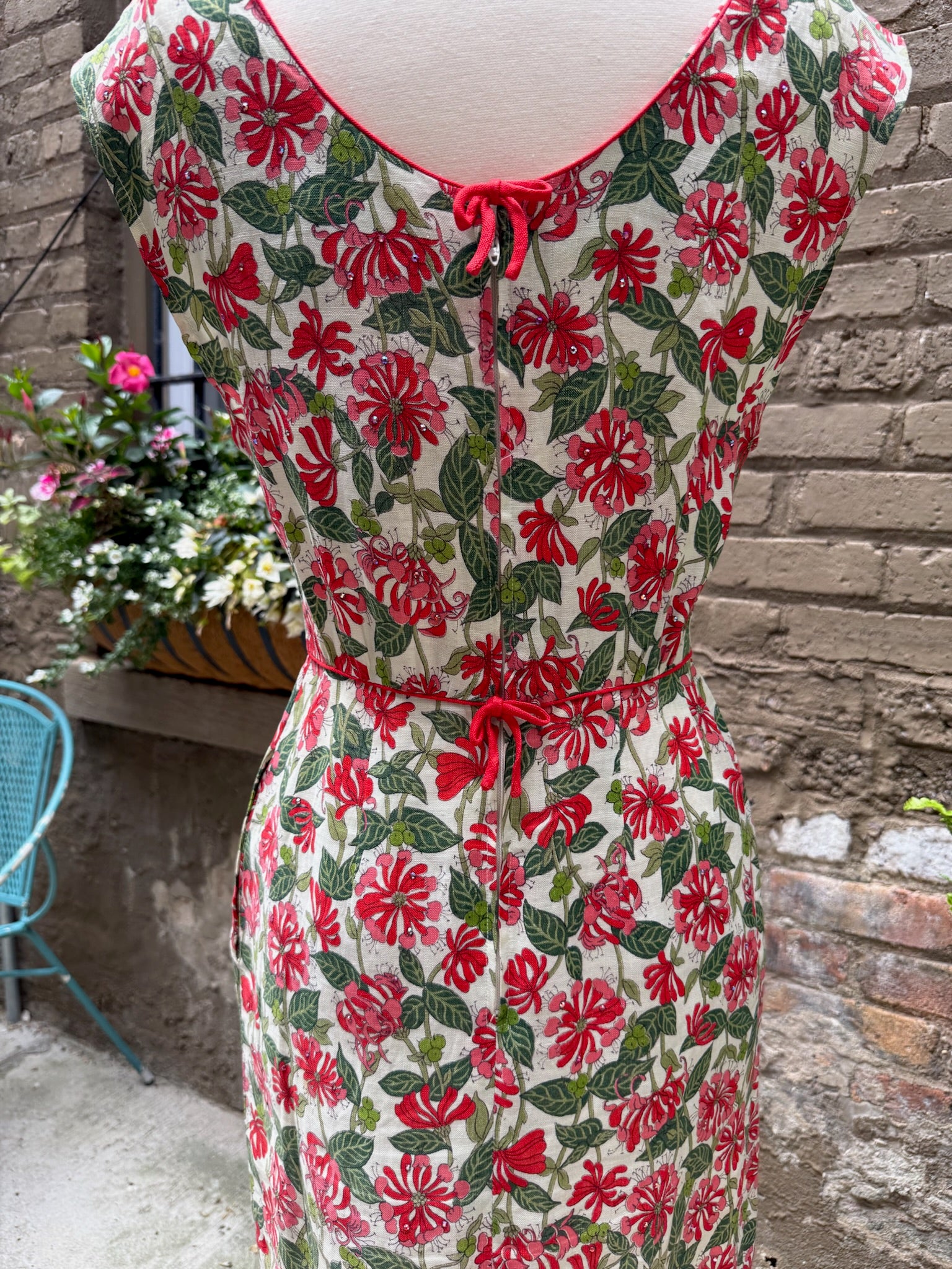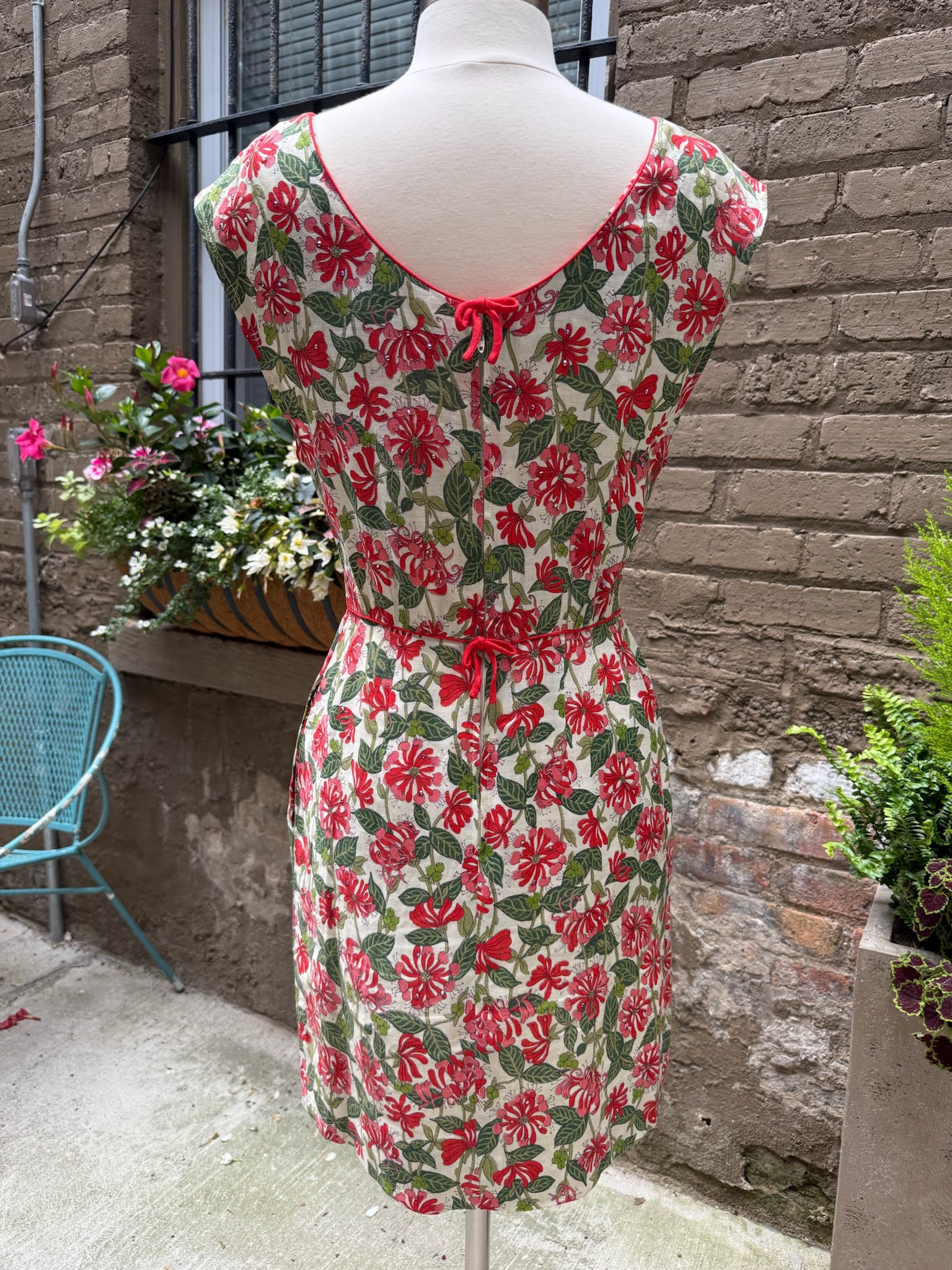 1960s Bullocks Wilshire Red Jungle Sparkle Dress