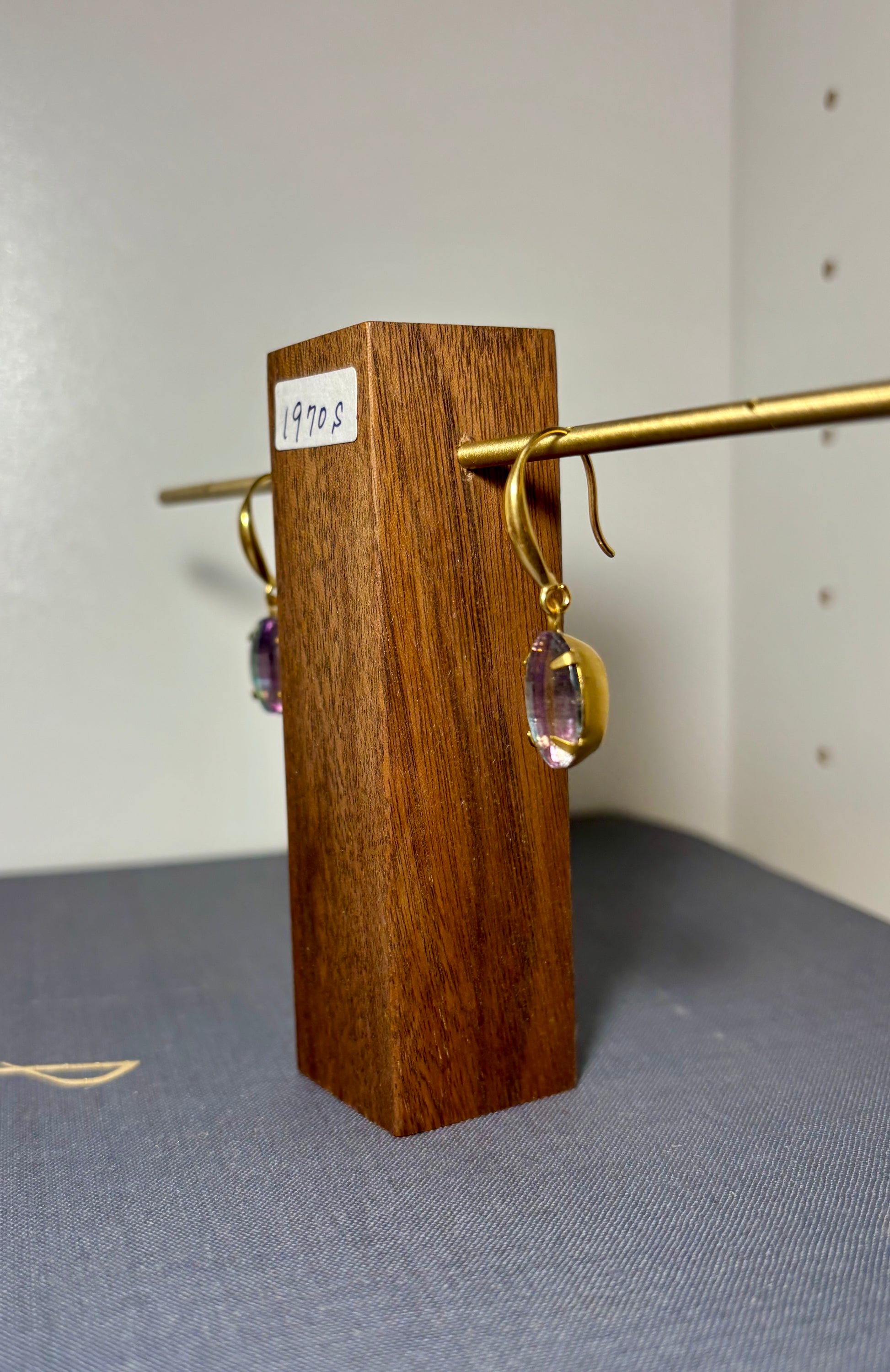 These earrings feature blue/purple iridescent glass beads from the 1970's with modern hardware. Made and sourced in Japan.