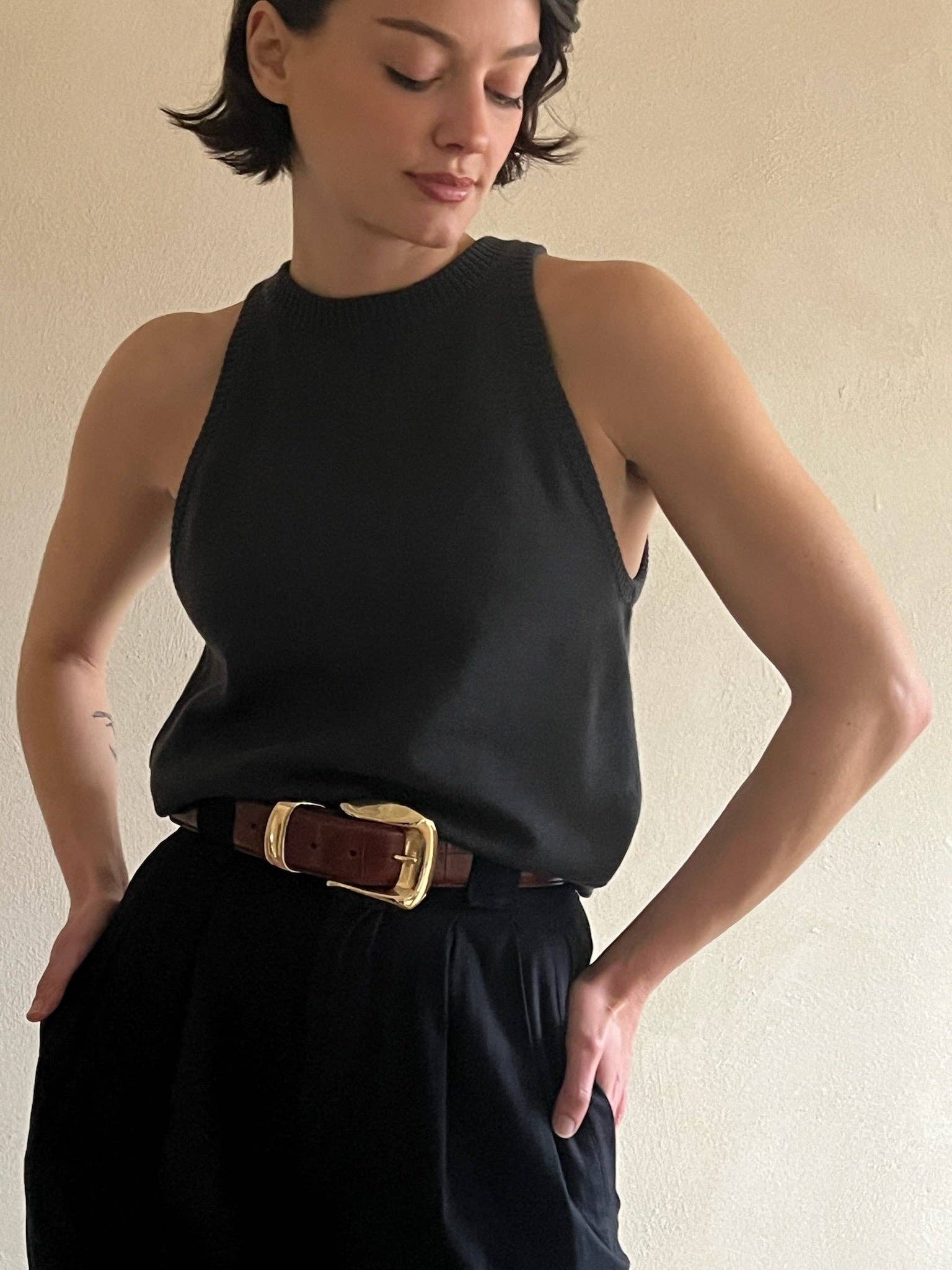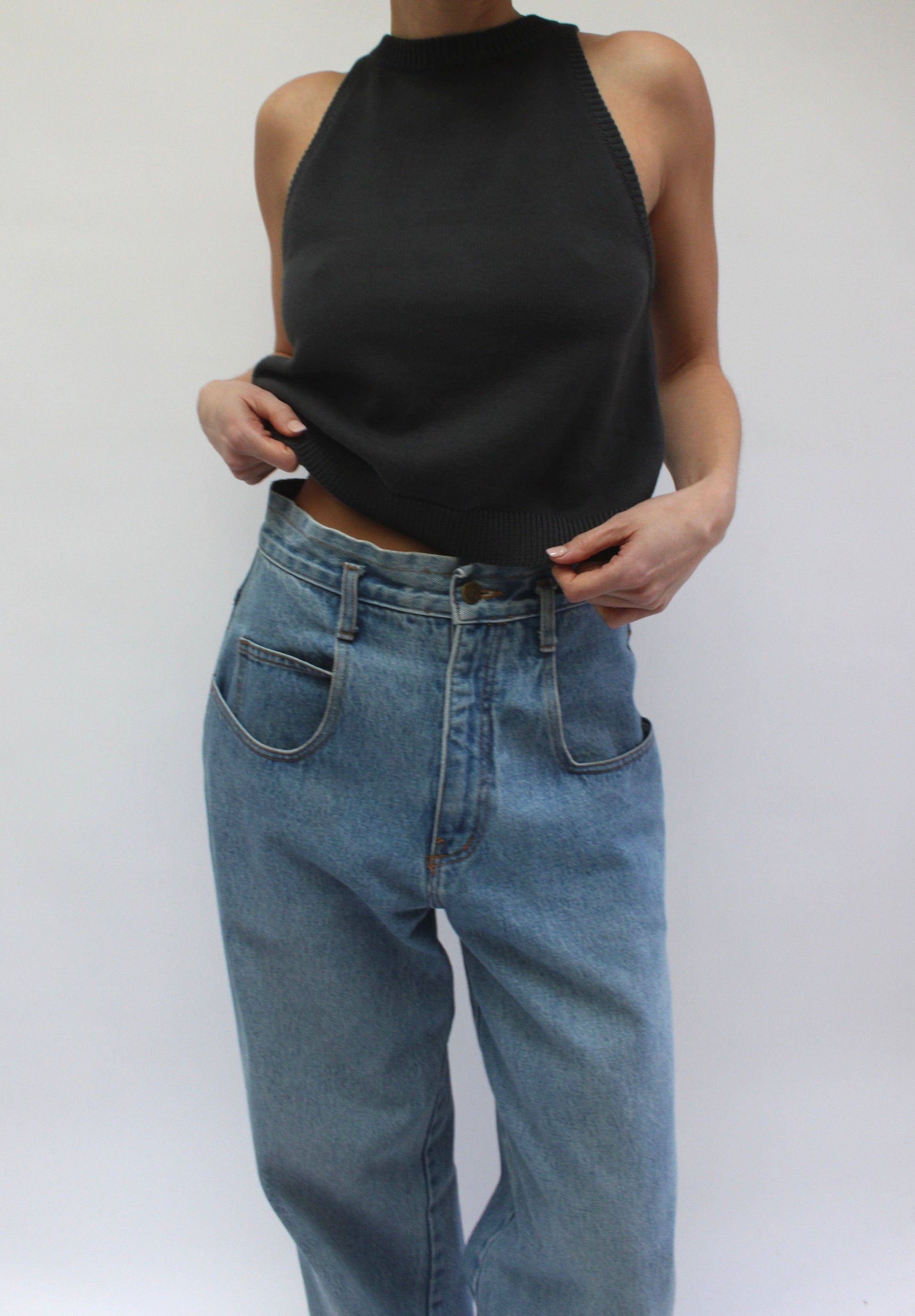 The Na Nin Georgina Pima Cotton Halter is a must-have in your wardrobe, providing luxurious softness and timeless style. Made with a mid-weight knit and delicate rib detailing on the neckline and arms, this waist-length halter is versatile and perfect for pairing with your favorite denim and the Camden Cotton pant, season after season.