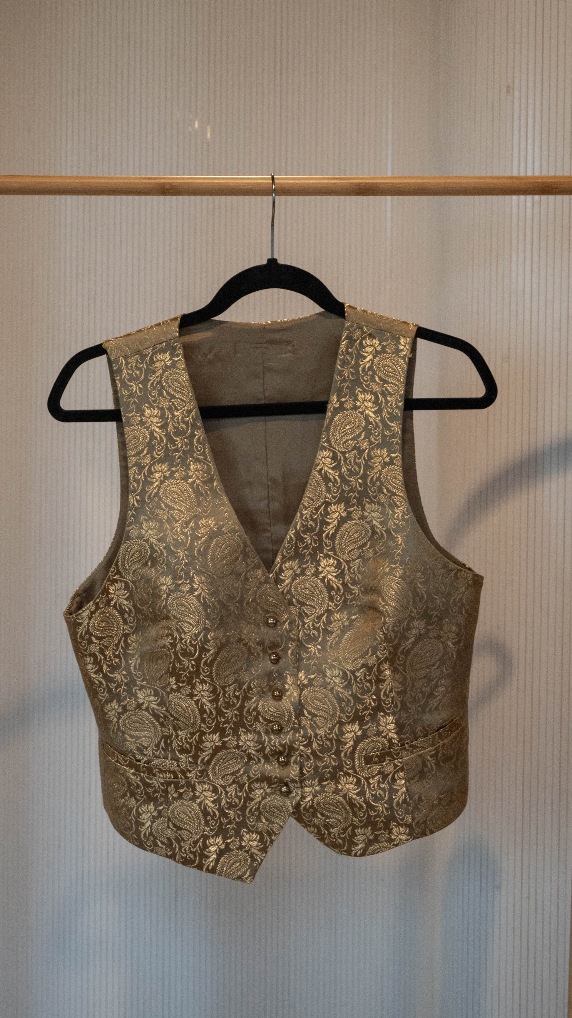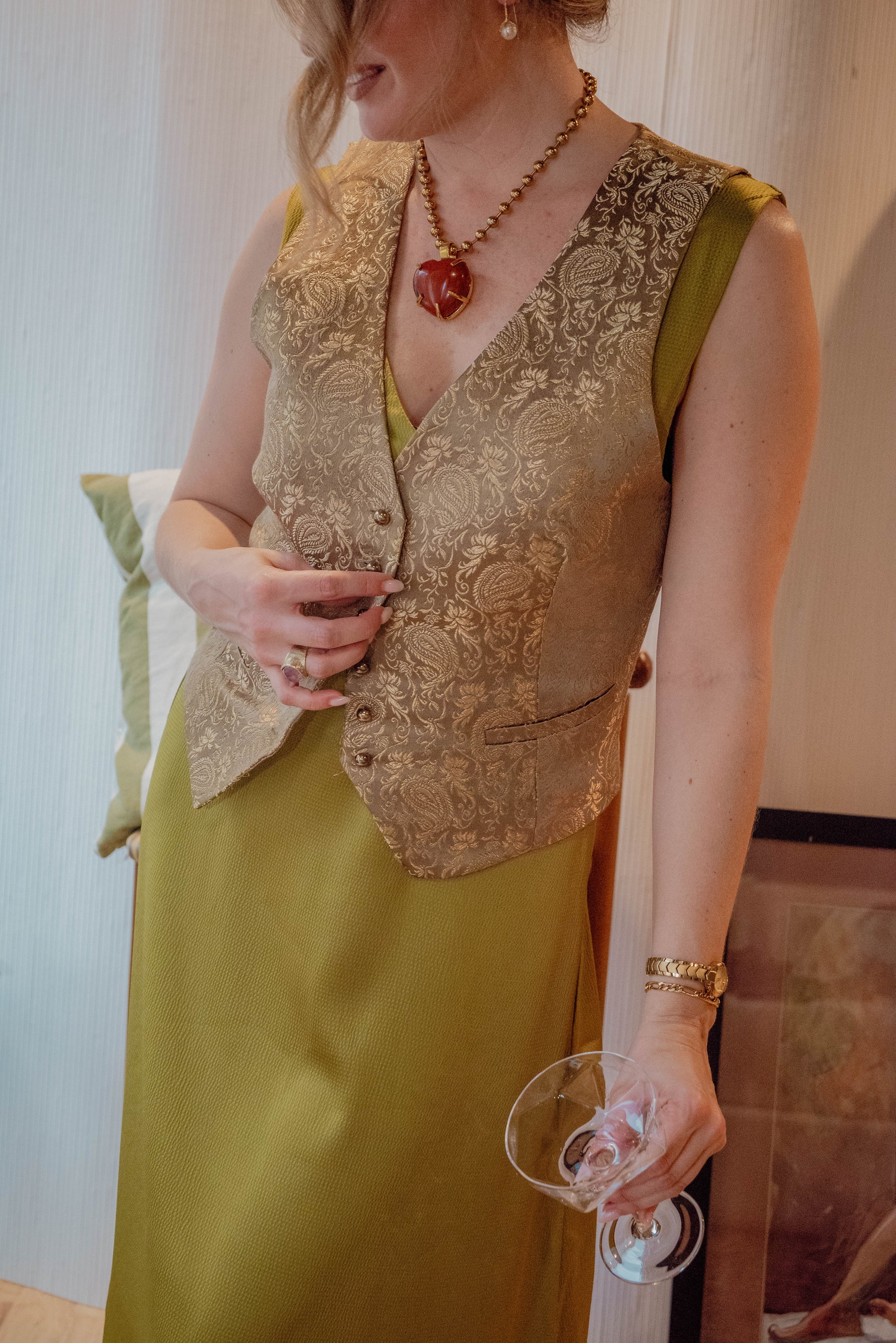 Golden Hour in the Vintage Golden Green Upholstery Vest