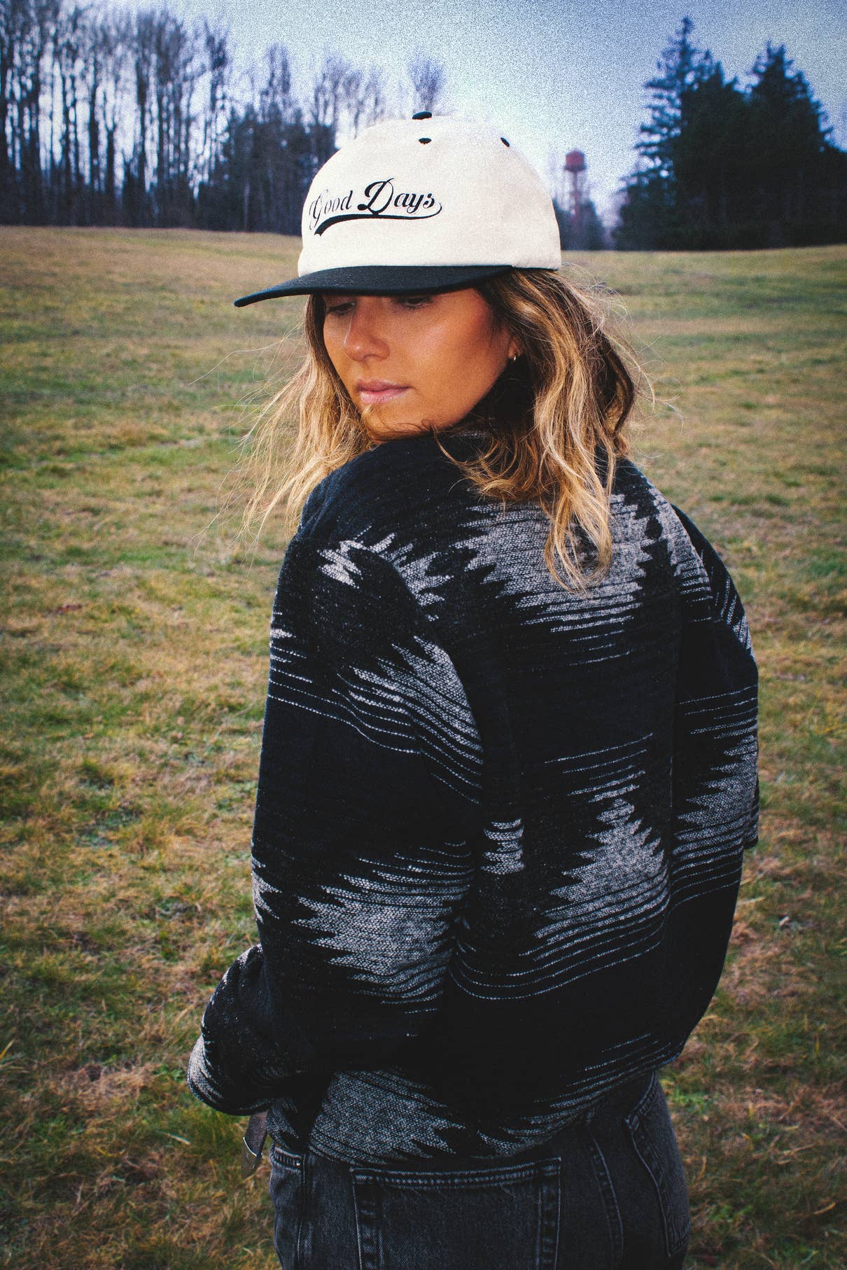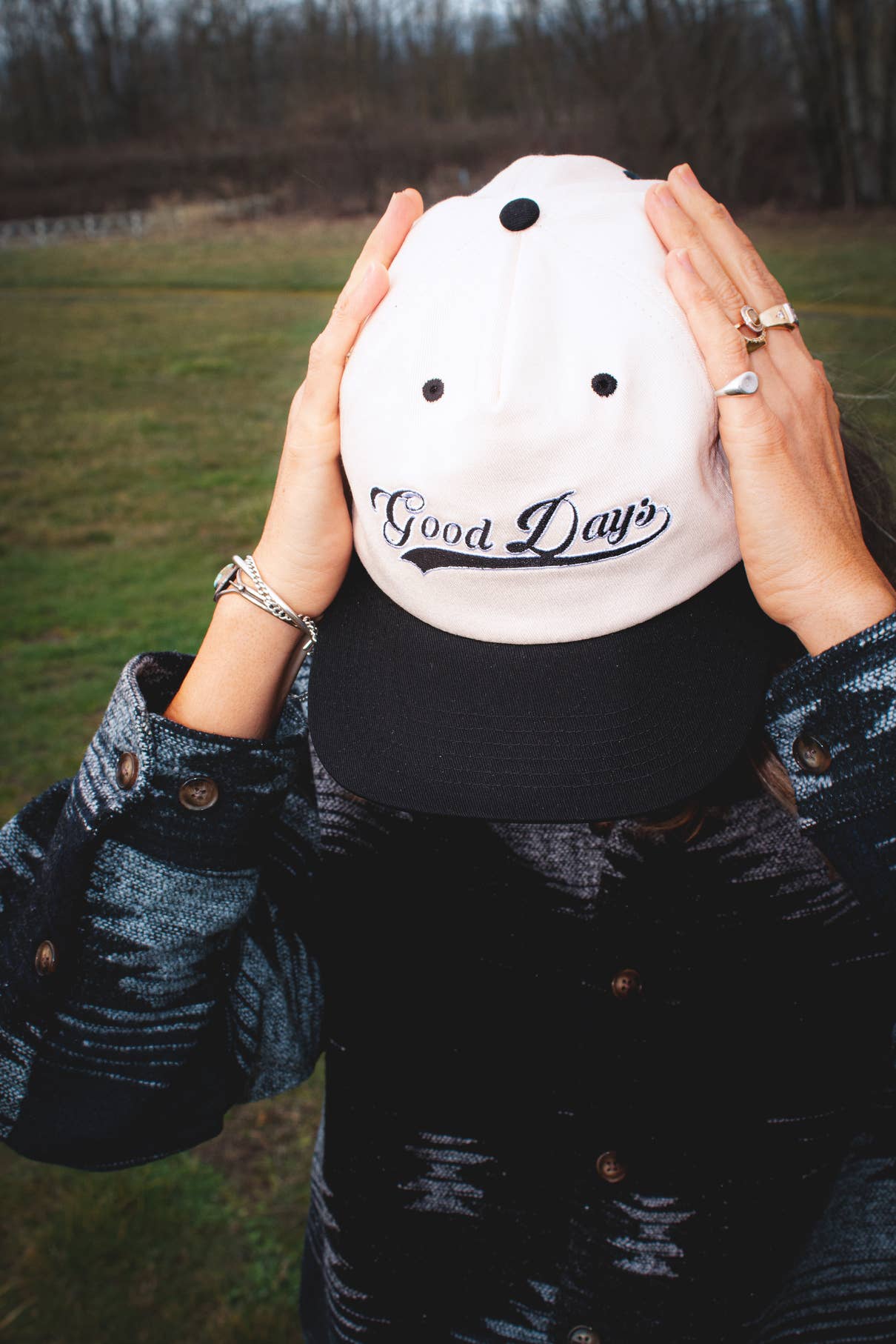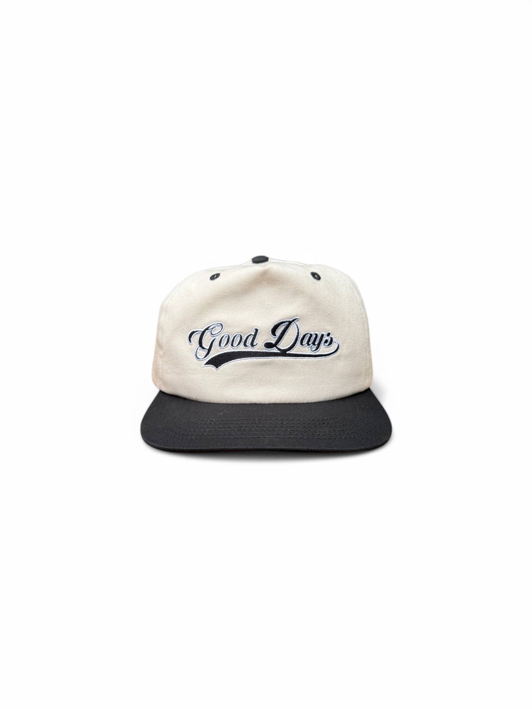 Good Days Varsity Hat With Embroidered Logo in black. Snapback closure. 100% Cotton.