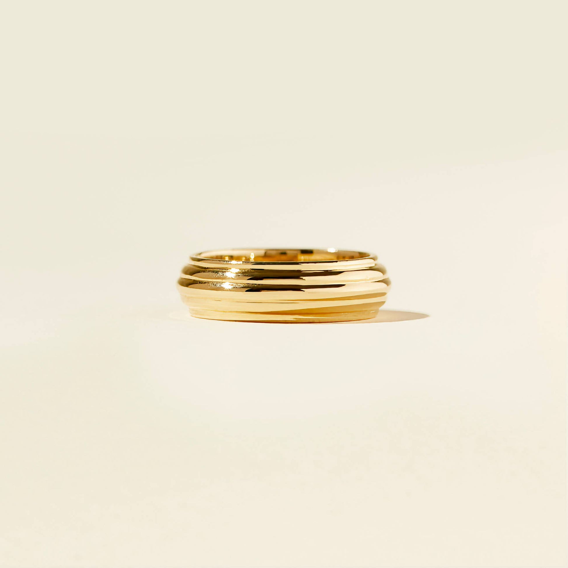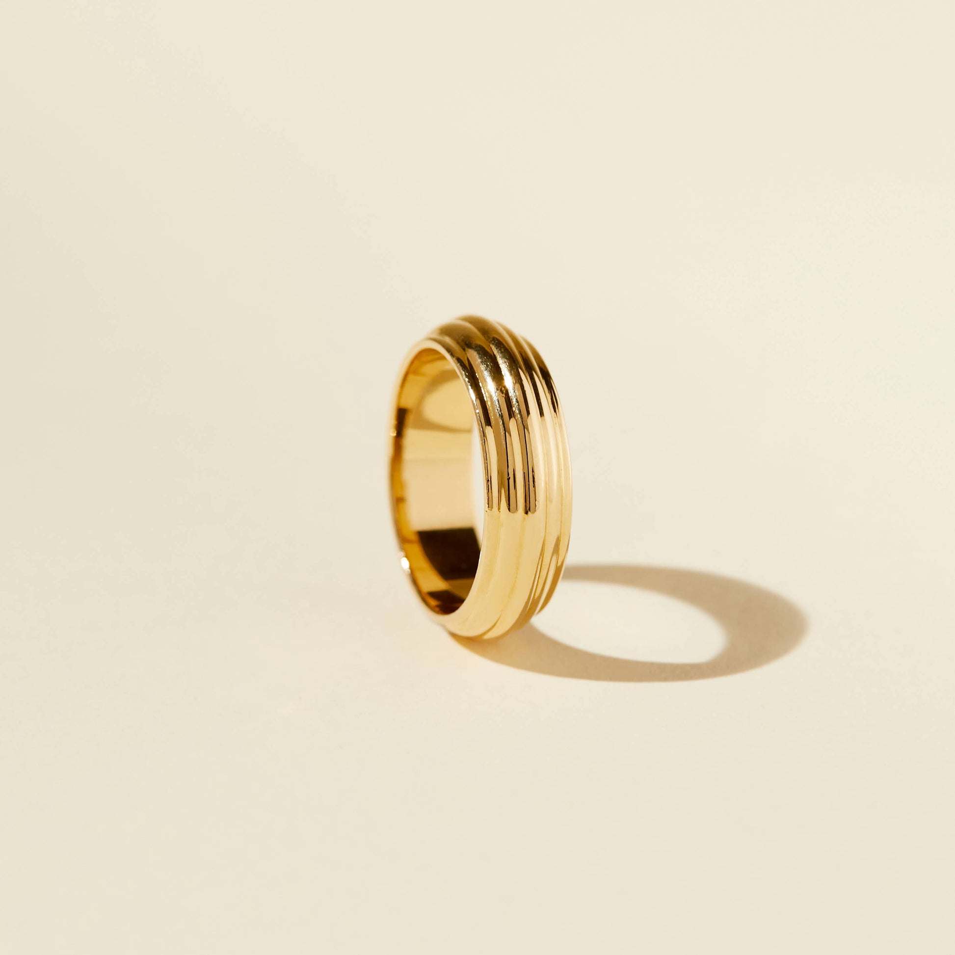 A simple statement, the Kimball Ring has soft lines that seamlessly wrap around your finger with a slightly domed shape. gold plated brass or solid sterling silver 7mm wide, 2.4mm deep