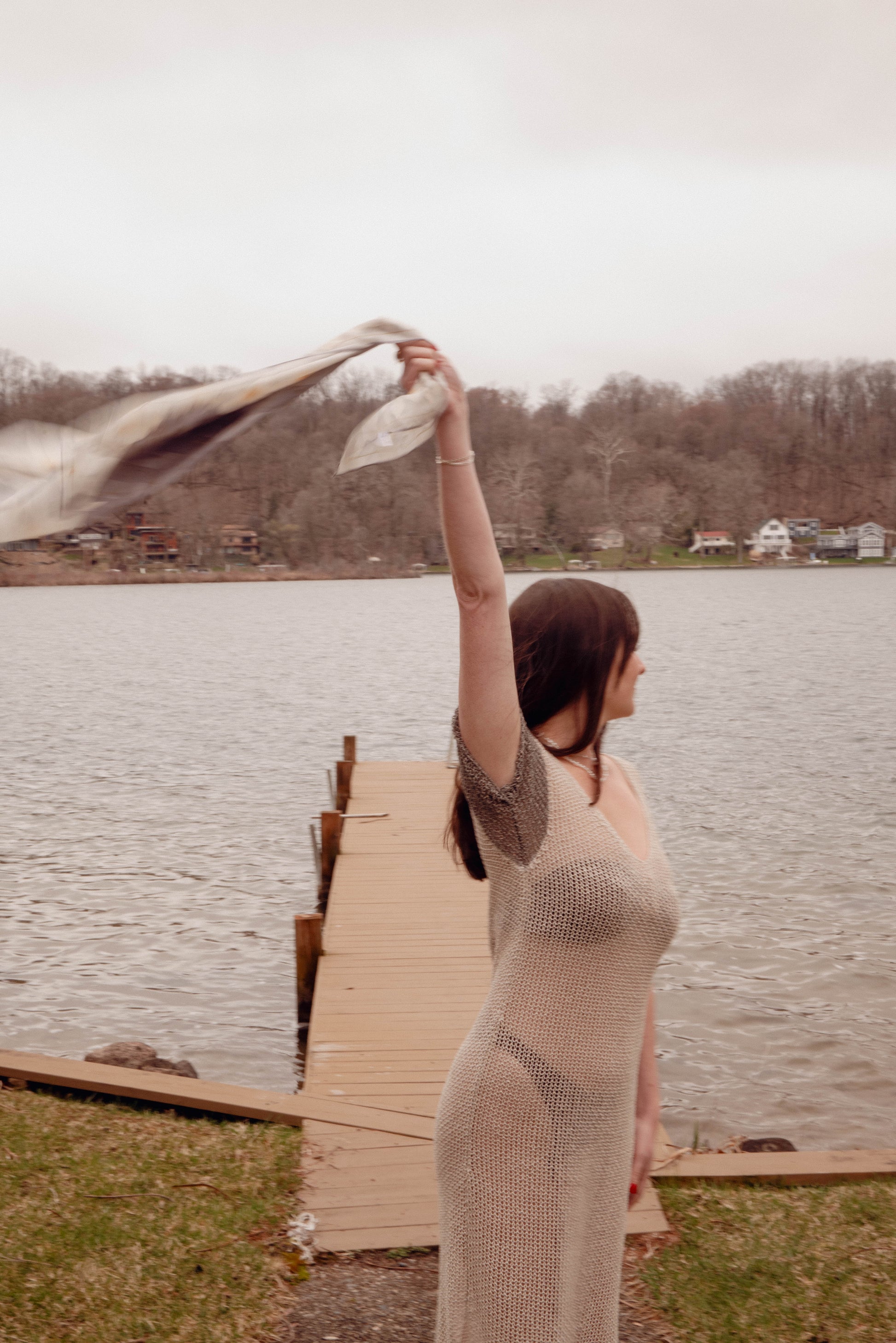 This is a secondhand modern Lorena Antoniazzi for our Spring Anniversary Collection. Made in Italy, this fitted crochet knit maxi dress is a linen blend, sheer, and can be worn over your favorite bathing suit down by the lake, or out for a concert with vintage cowboy boots.