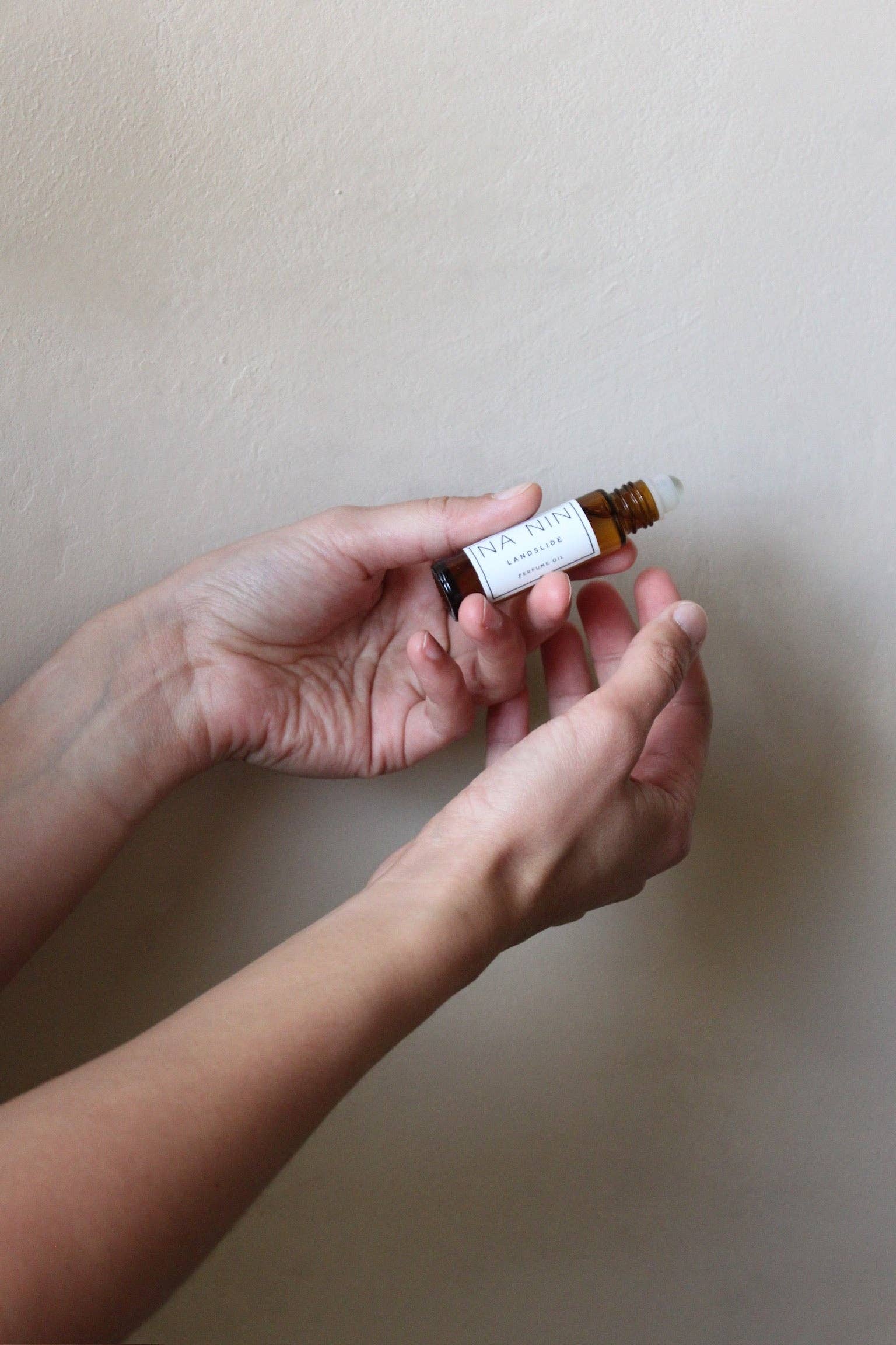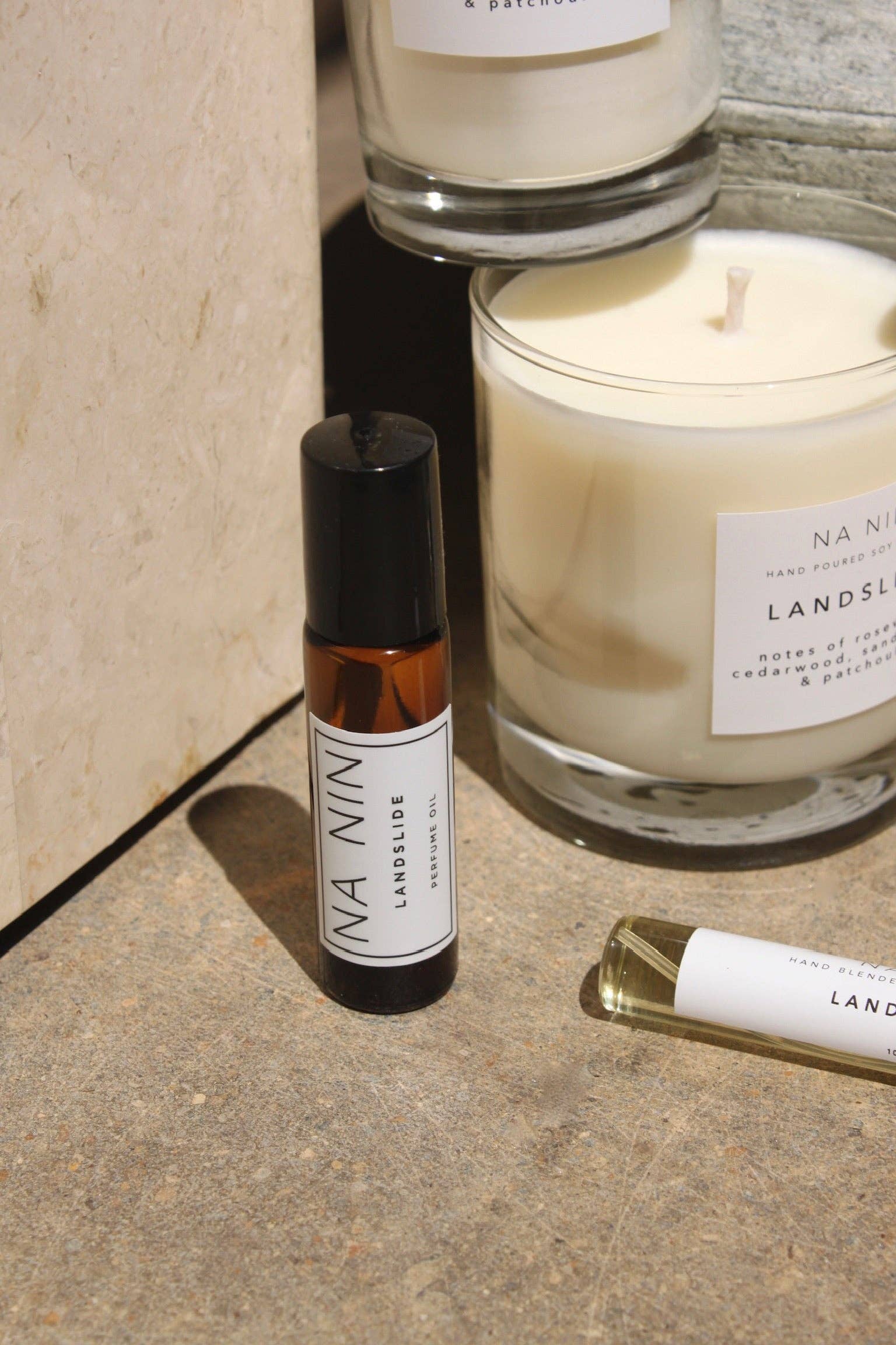 Landslide is an earth mama scent. Blended notes of patchouli, cedarwood, rosewood & sandalwood. Inspired by the ultimate gypsy lady, Stevie Nicks. 10ml glass vessel with glass roller ball. Made in Richmond, VA