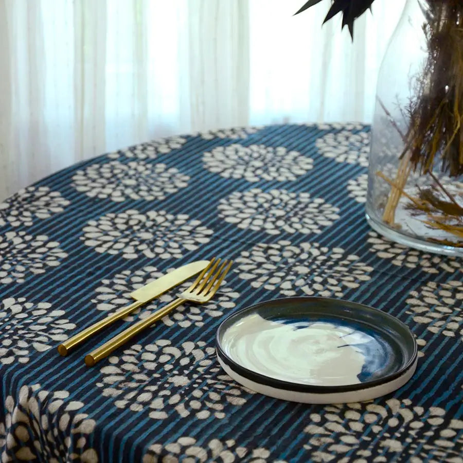The Sana Round Cotton Block Printed Tablecloth is an exquisite choice for any dining set up. Offering a luxurious and elegant experience, crafted from organic cotton, and enriched with natural dyes in a 100% handmade process, it will instantly add a touch of classic sophistication to your home decor.
