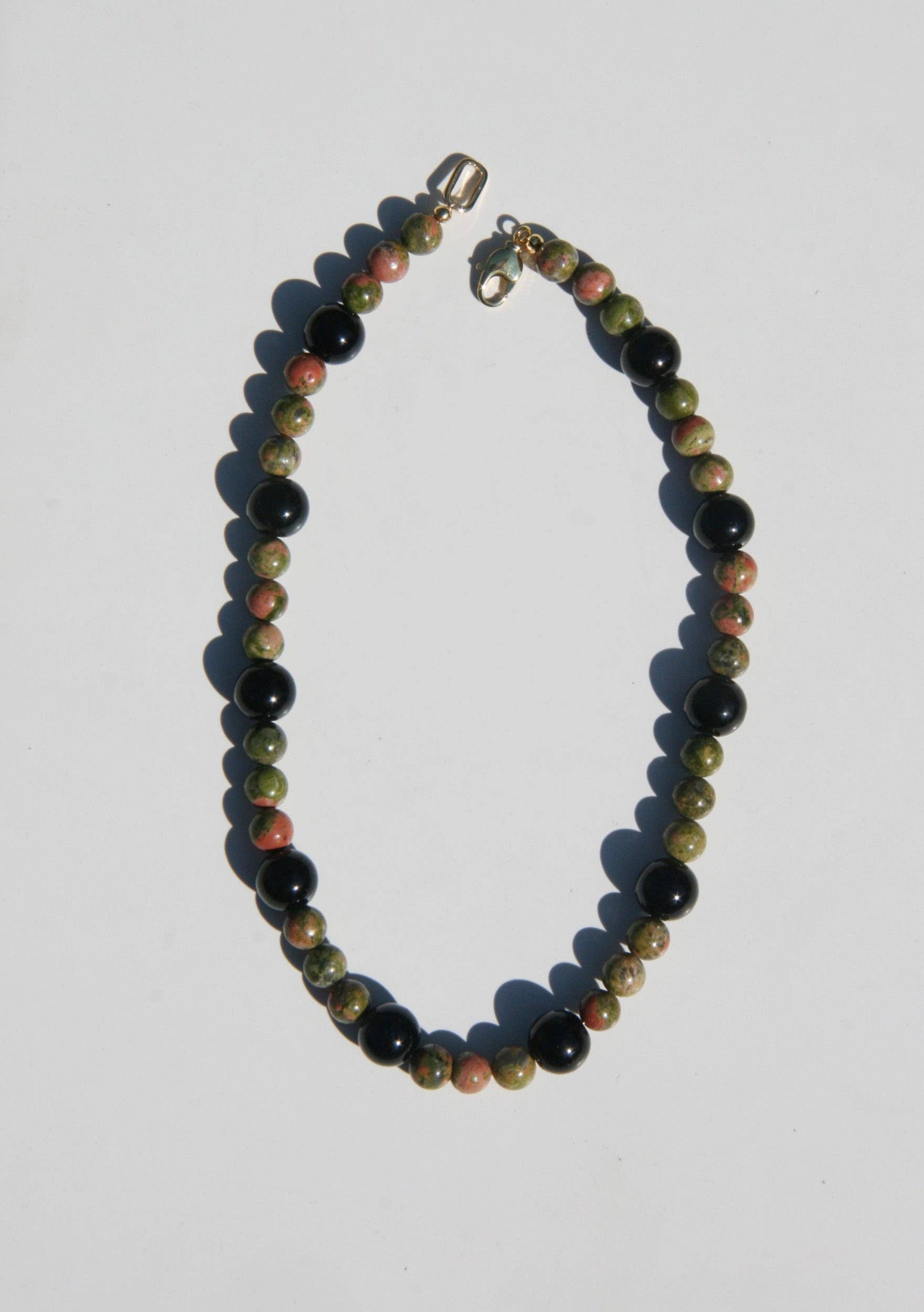 The Rumi Unakite Onyx Beaded Necklace with Gold-Filled Clasp 15"