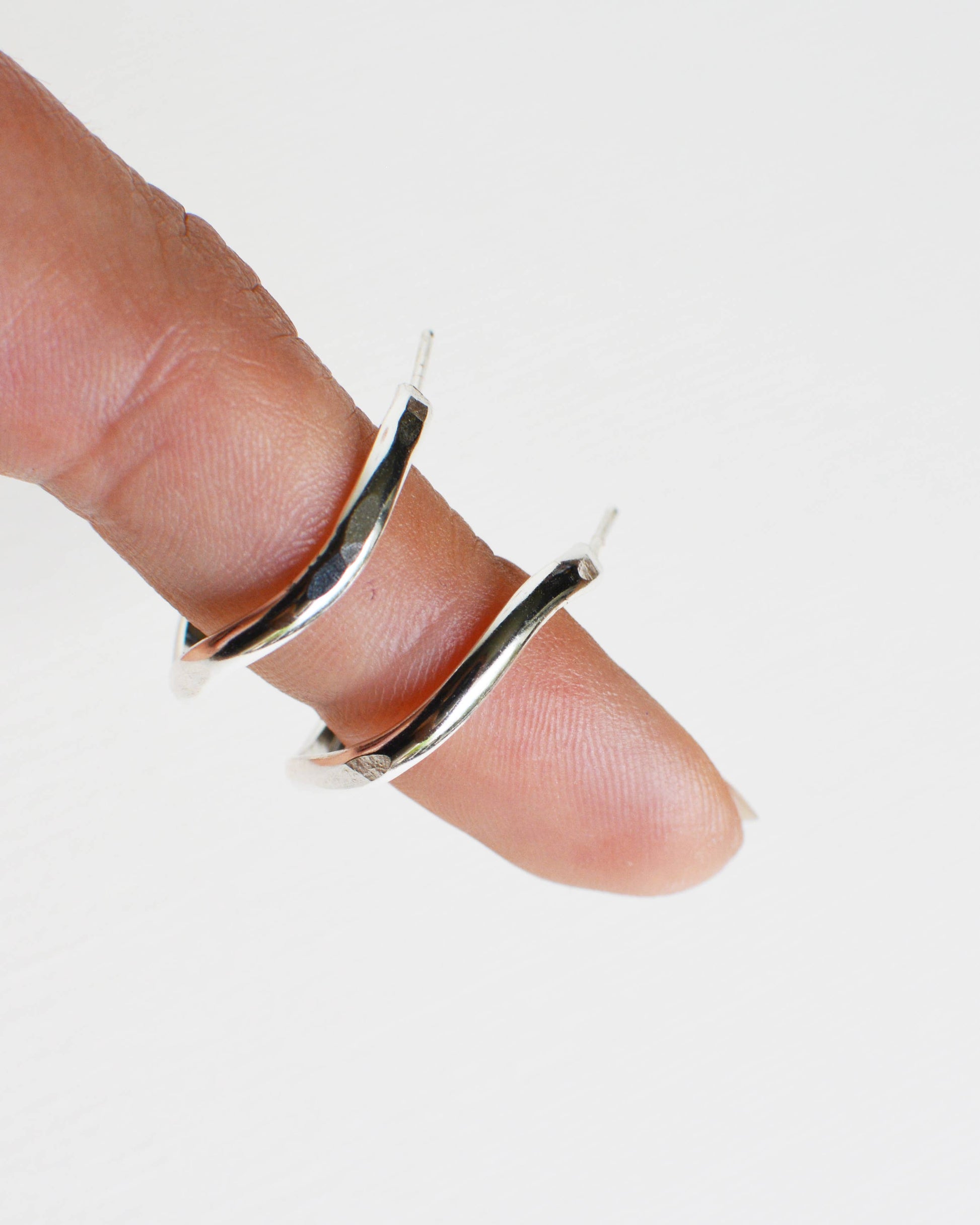 Elevate your everyday with the sterling silver heli hoops. An effortlessly chic essential featuring an organic wavy silhouette that layers beautifully. Handcrafted in Denver, each pair showcases artisanal detail in a timeless 22 mm design. Sterling silver, Approx. 22 mm in diameter. *Pictured with Mini Heli Hoops. Hand detailed and made in studio in Denver, CO