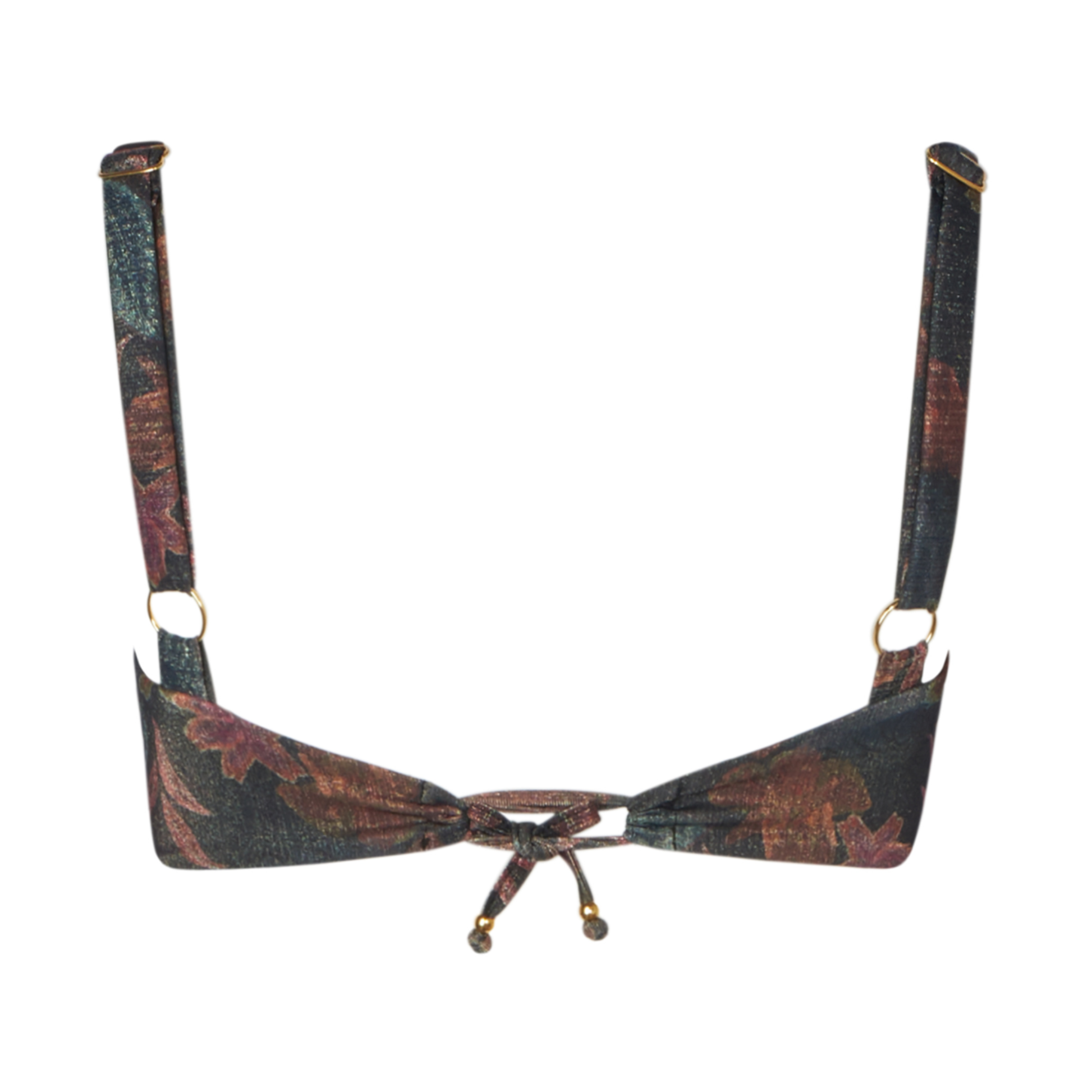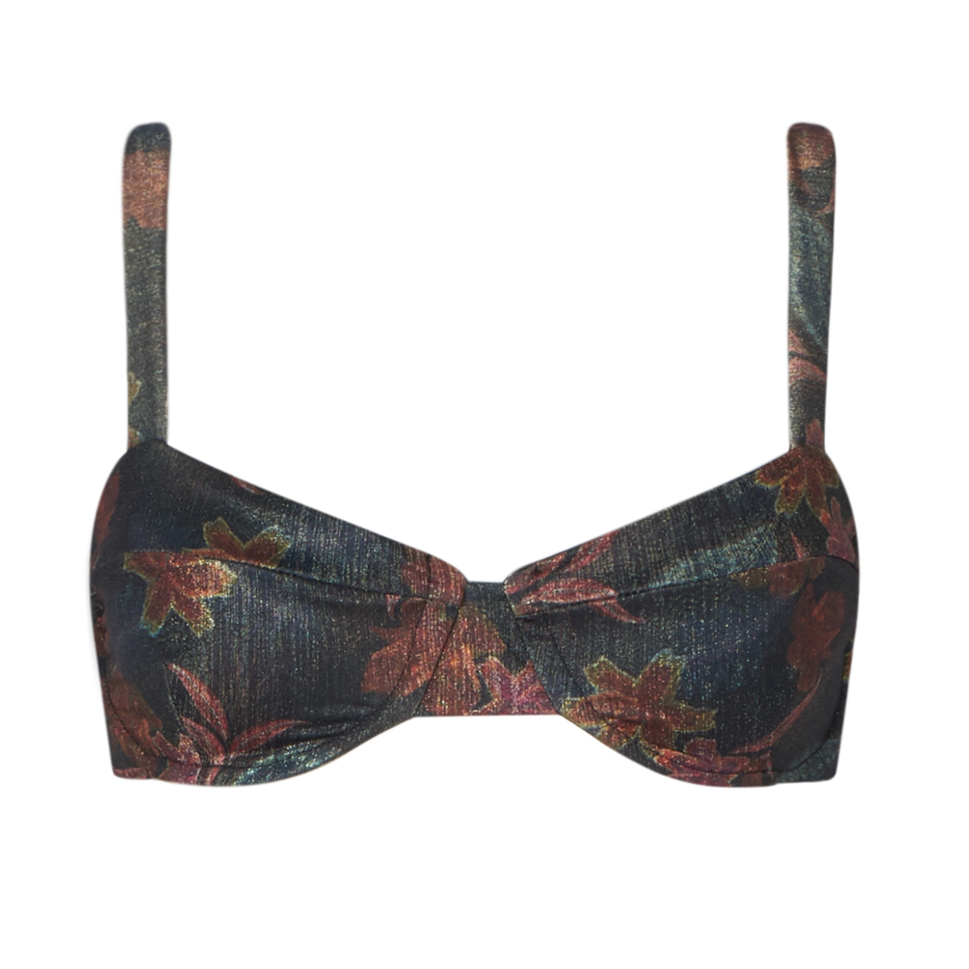 This Stella Black Dore Bustier Top is an underwire-lined style with thick shoulder straps. Its shimmery material will help you stand out on any beach or pool day and pairs perfectly with the matching Karma bottom. *Item not sold in a set*