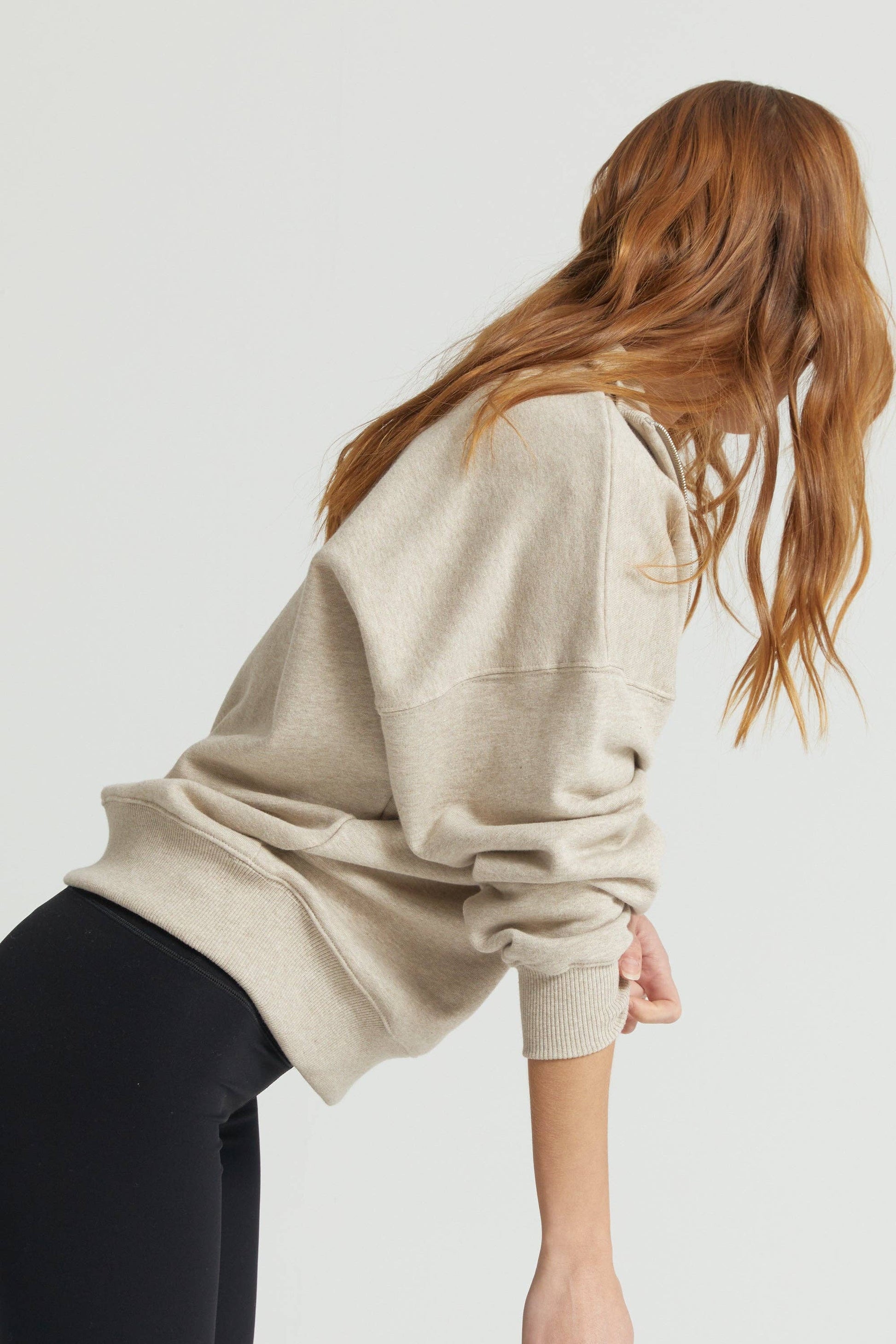 Indulge in luxury with our 1/2 Zip Travel Sweatshirt. Crafted in a relaxed and refined style, it features a versatile zip neckline. With dropped shoulders and a boxy boyfriend fit, embrace comfort and sophistication in our oatmeal sweatshirt.