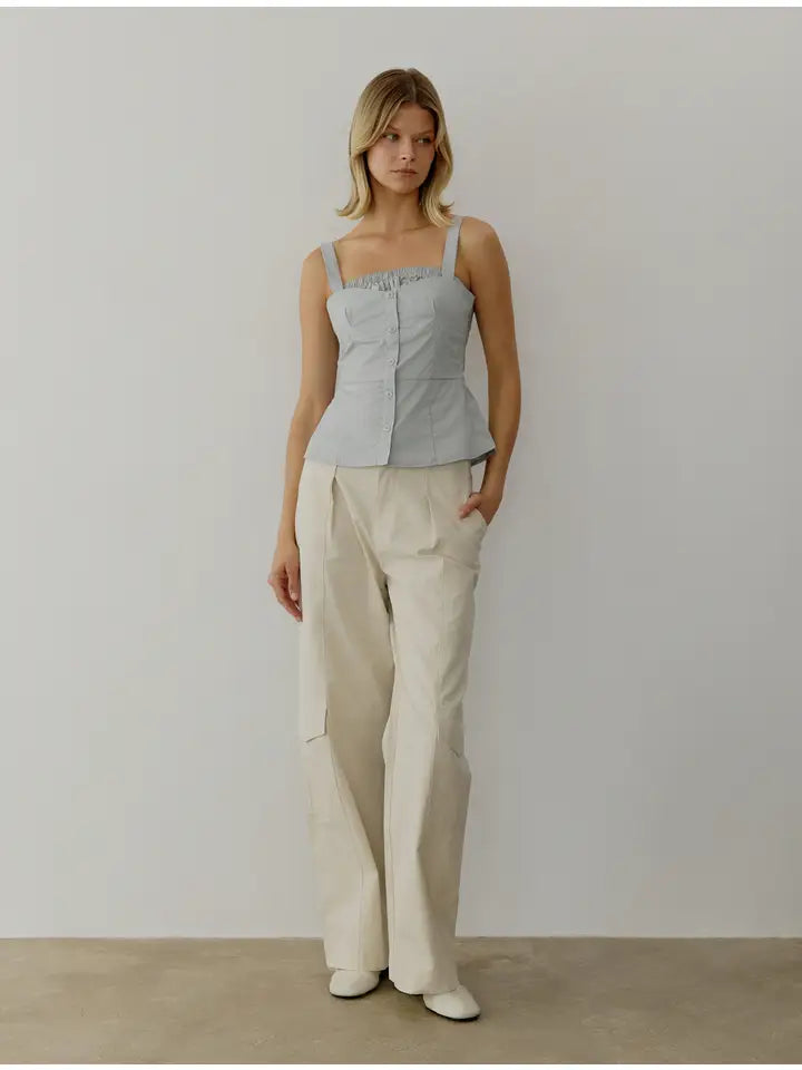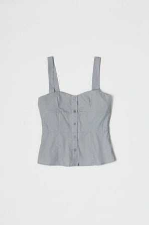 Add a bit of romance to your wardrobe with The Diana Top. It is a bustier style tank top featuring a square neck, hidden side zipper closure, and a smocked back for added comfort. The tonal dainty buttons add a chic touch, while the fitted bodice creates a flattering silhouette.