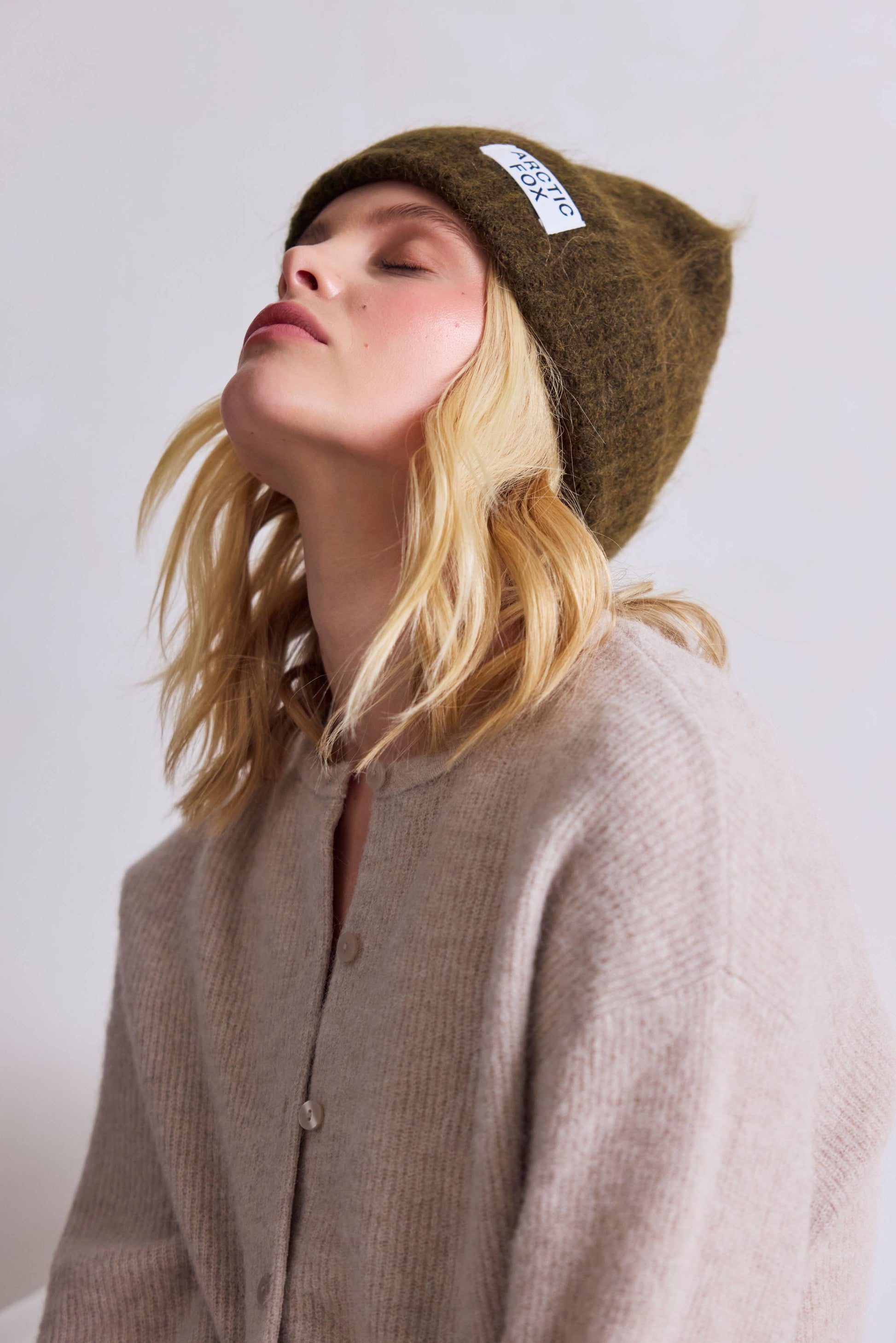 The Mohair Beanie in Khaki Green