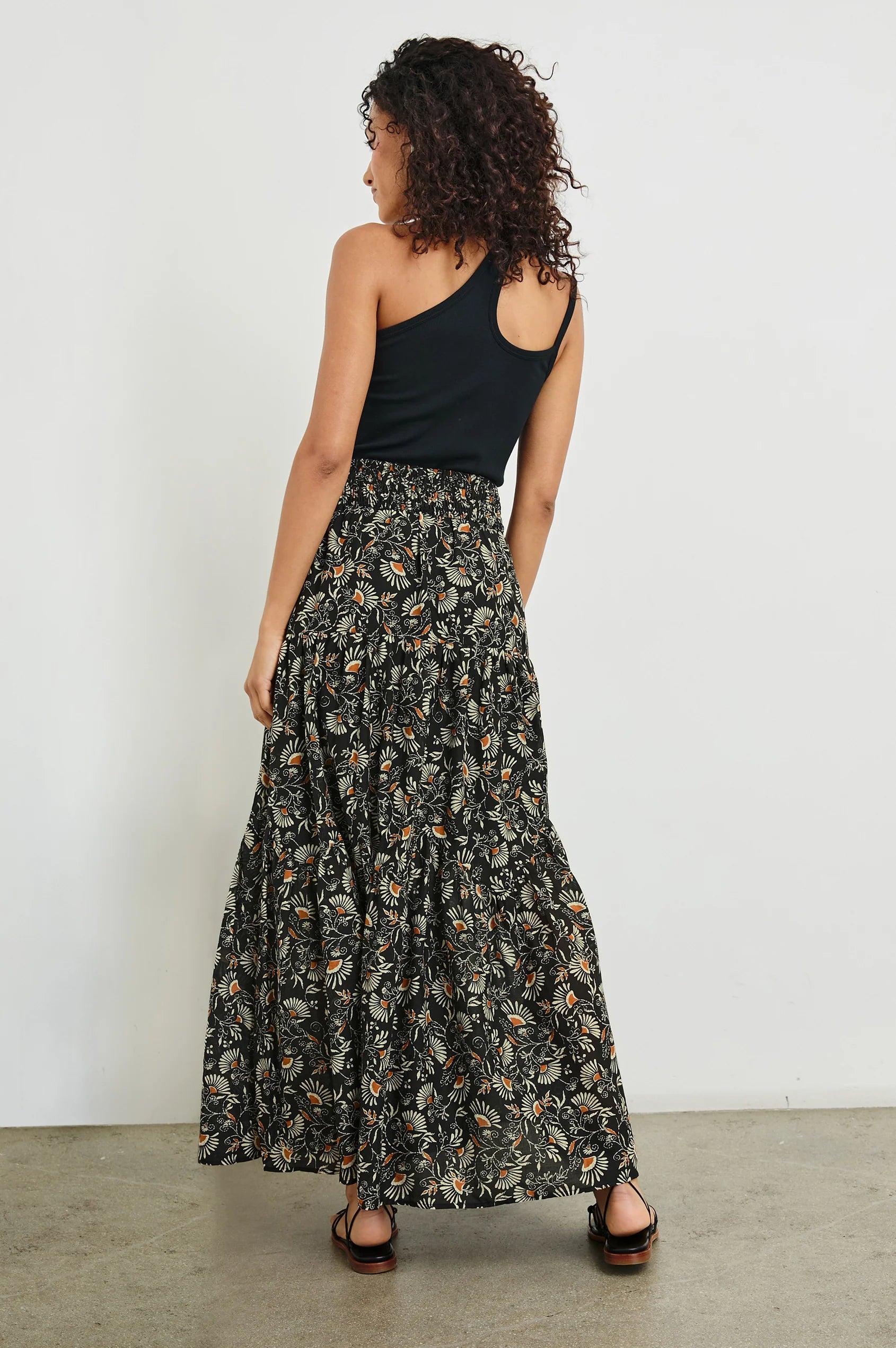 The Peony is a flowing skirt crafted from tiered beach cotton with a shirred, elasticated waist. It is designed to wear high-rise, and has a maxi silhouette.