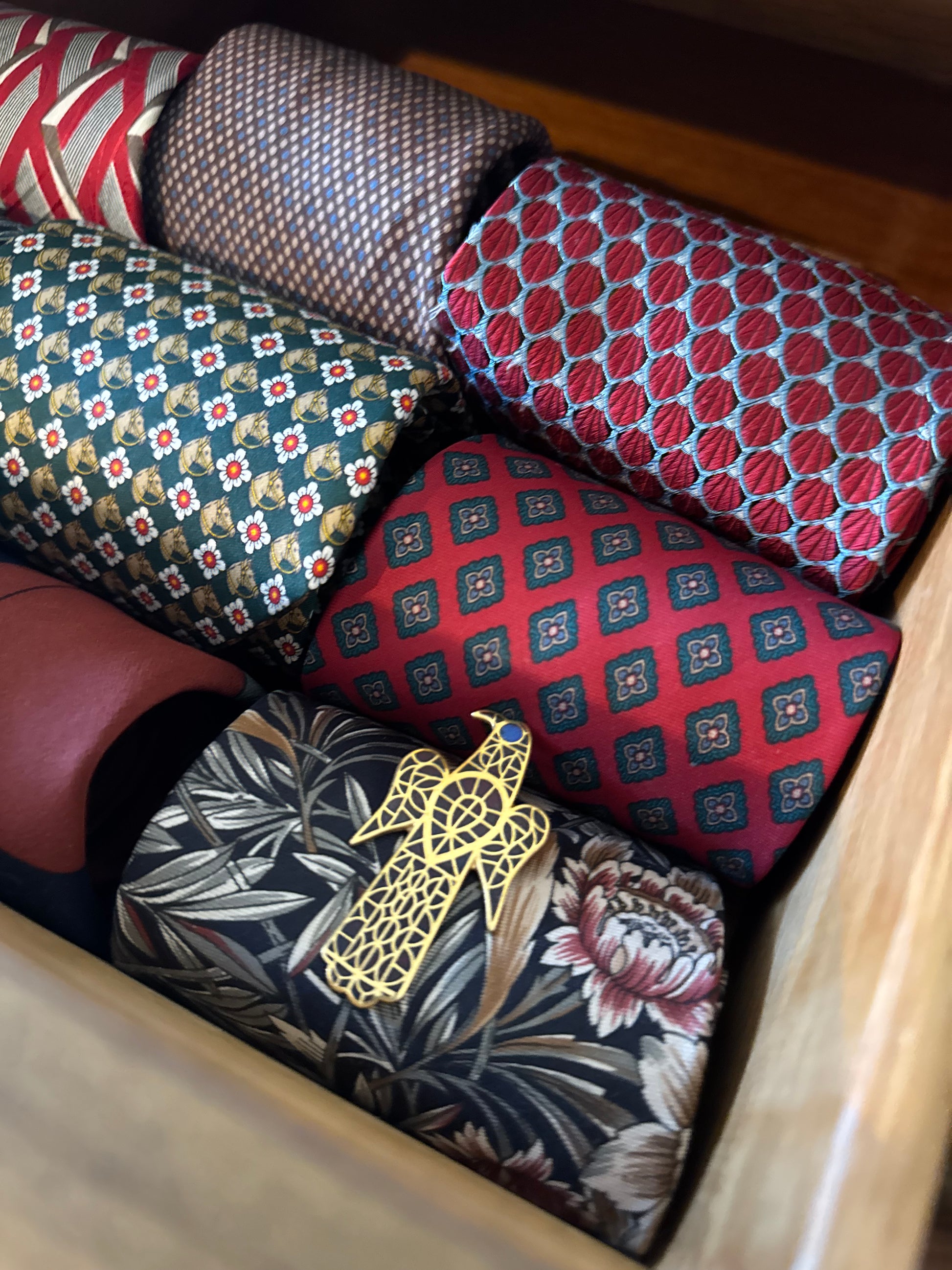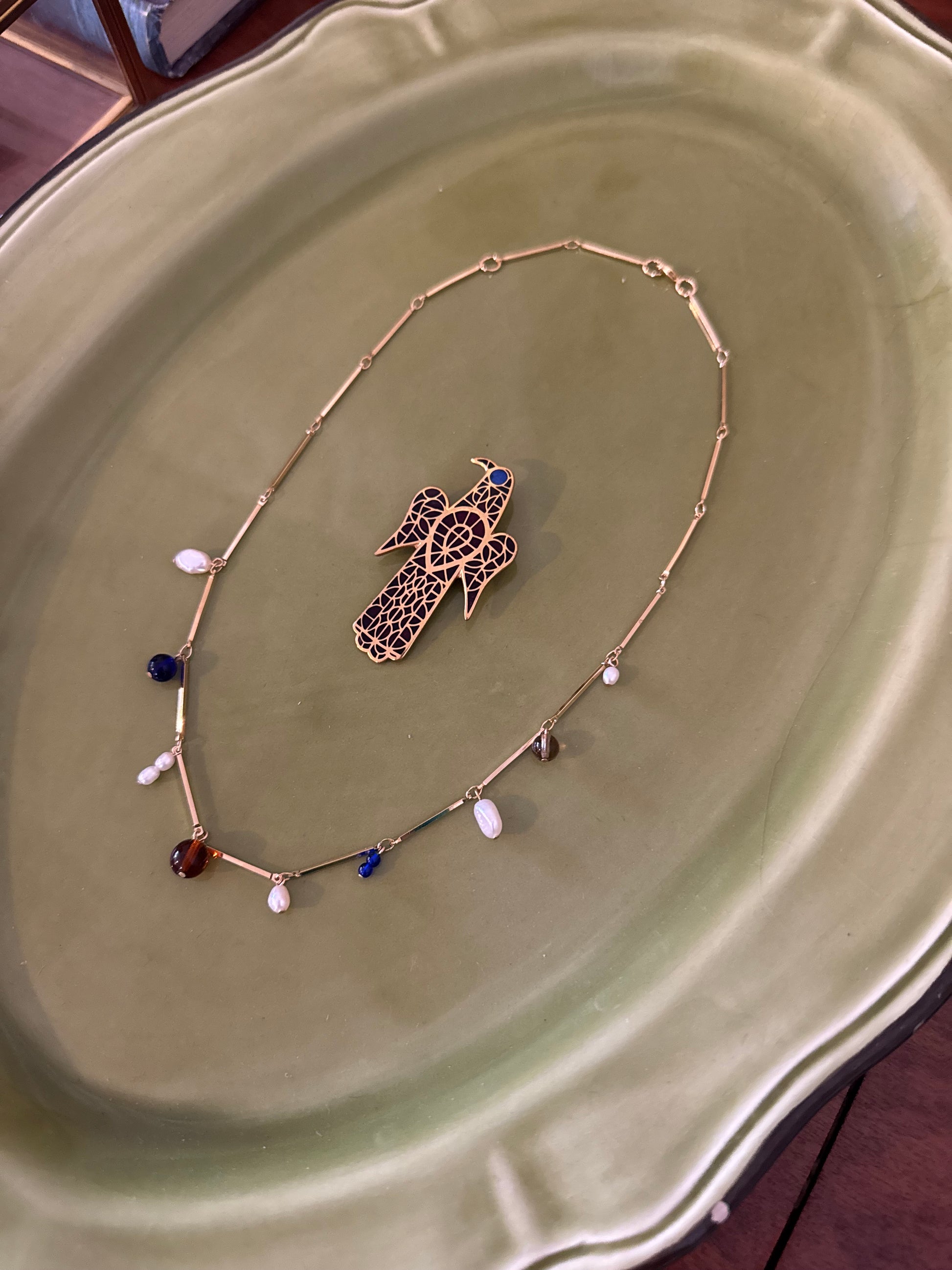 This is a vintage item for our Spring Anniversary Collection. Signed MMA 1993 Metropolitan Museum of Art in a beautiful art deco inspired design of a bird. Has the option to be worn as a brooch or a necklace.