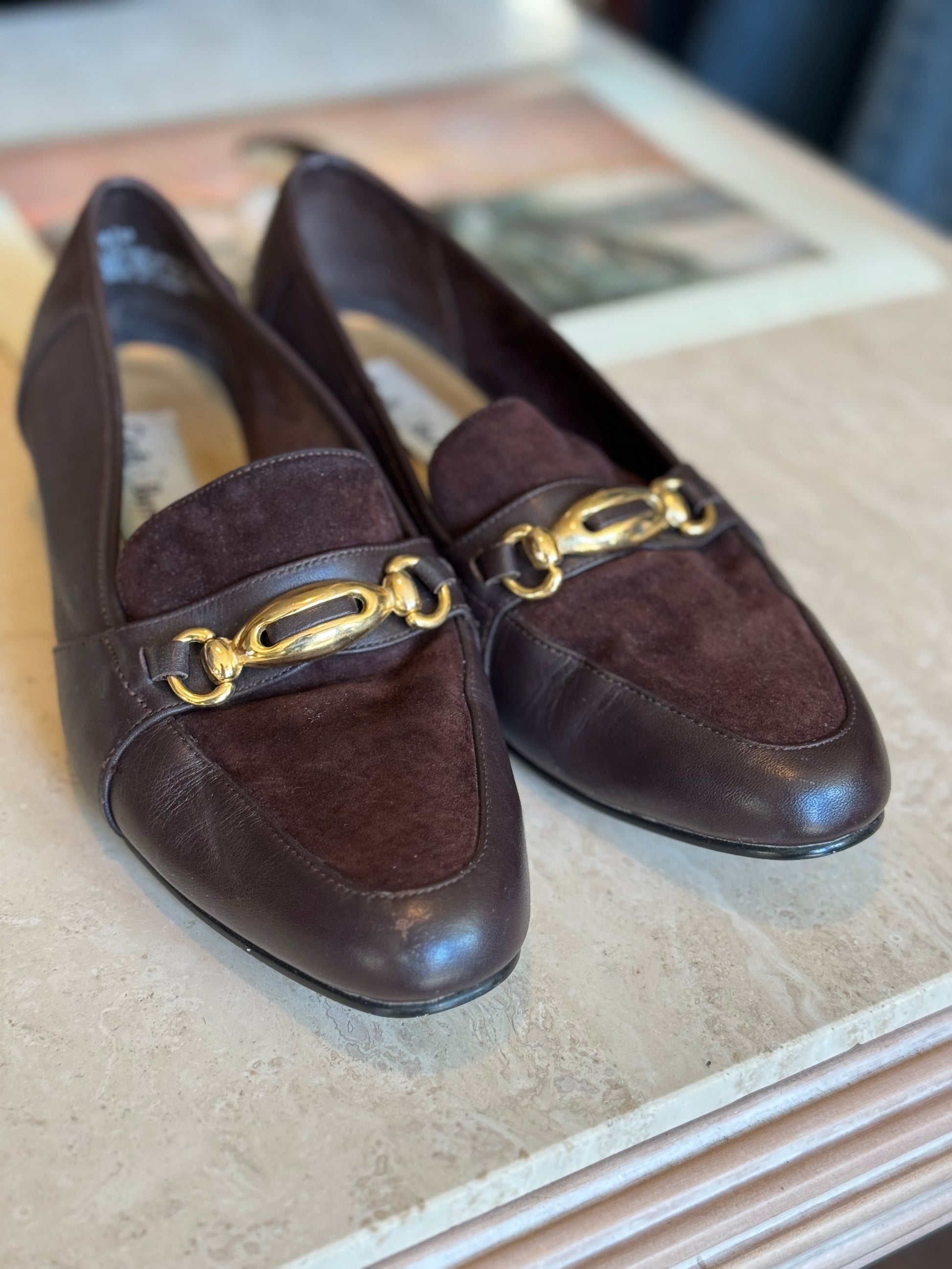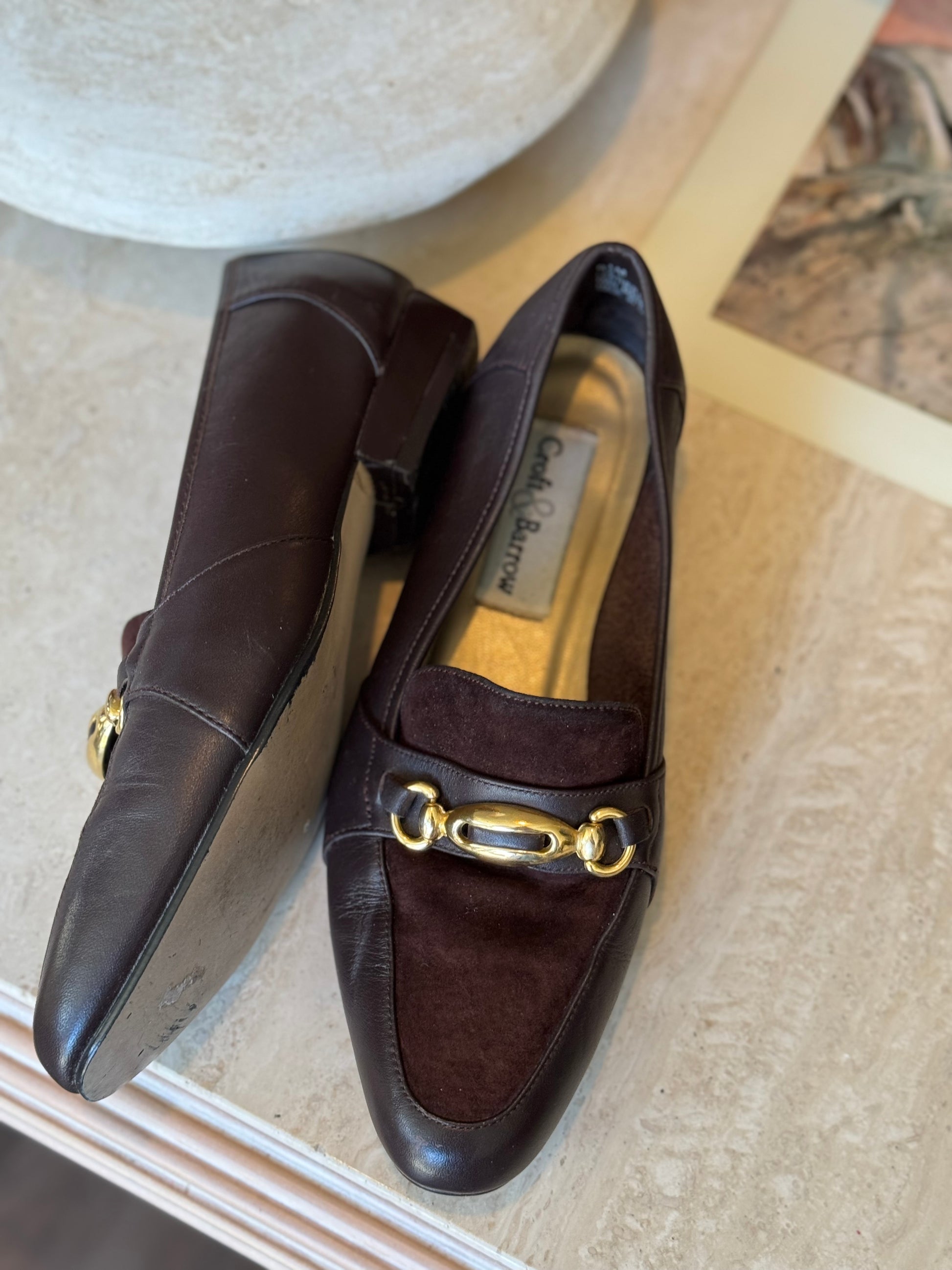 Vintage Croft & Borrow leather & suede loafers with gold accent