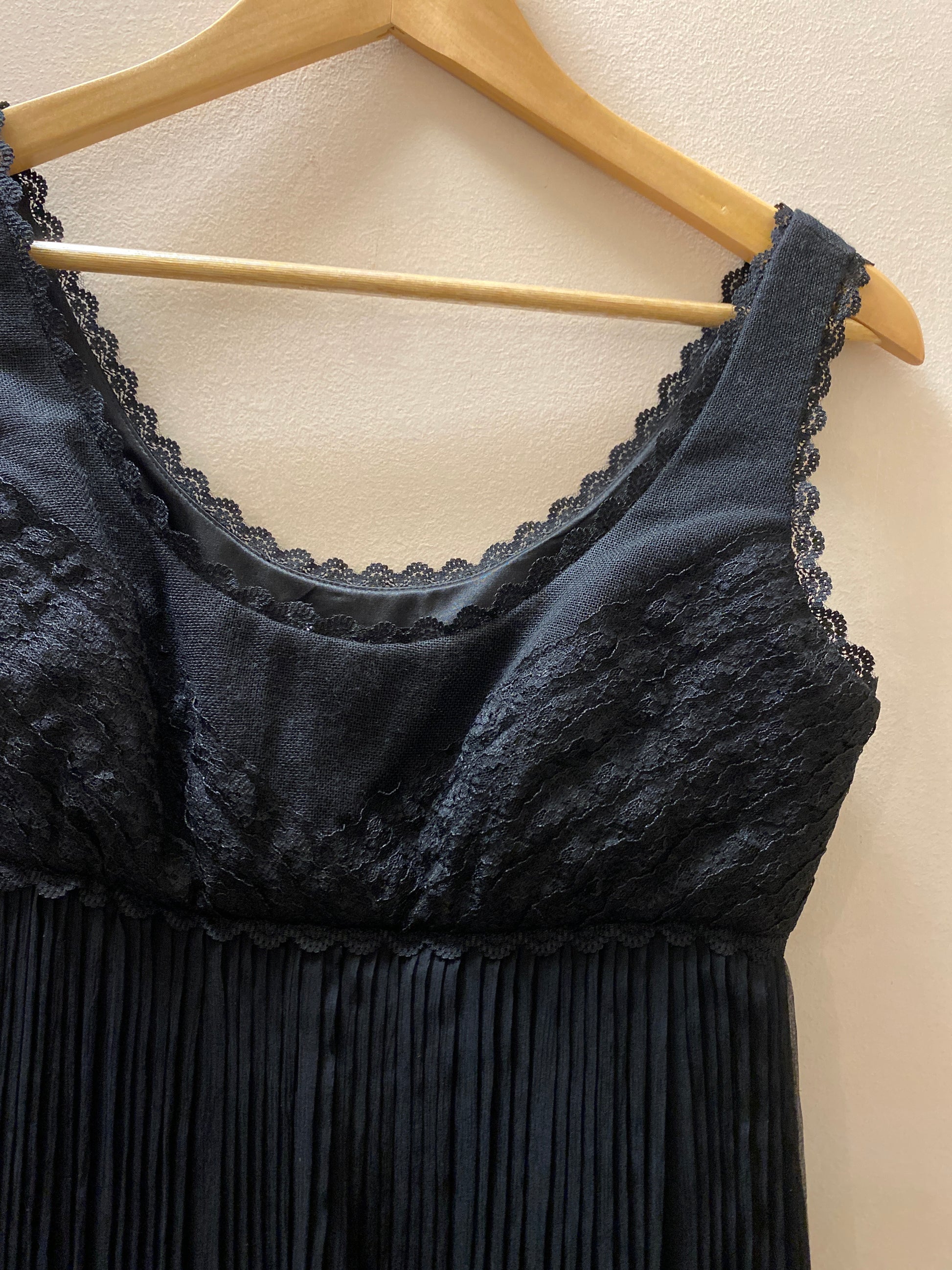 Style Features: Laundry by Shelli Segal brand, thick shoulder straps with lace detailing, pleated skirt bottom