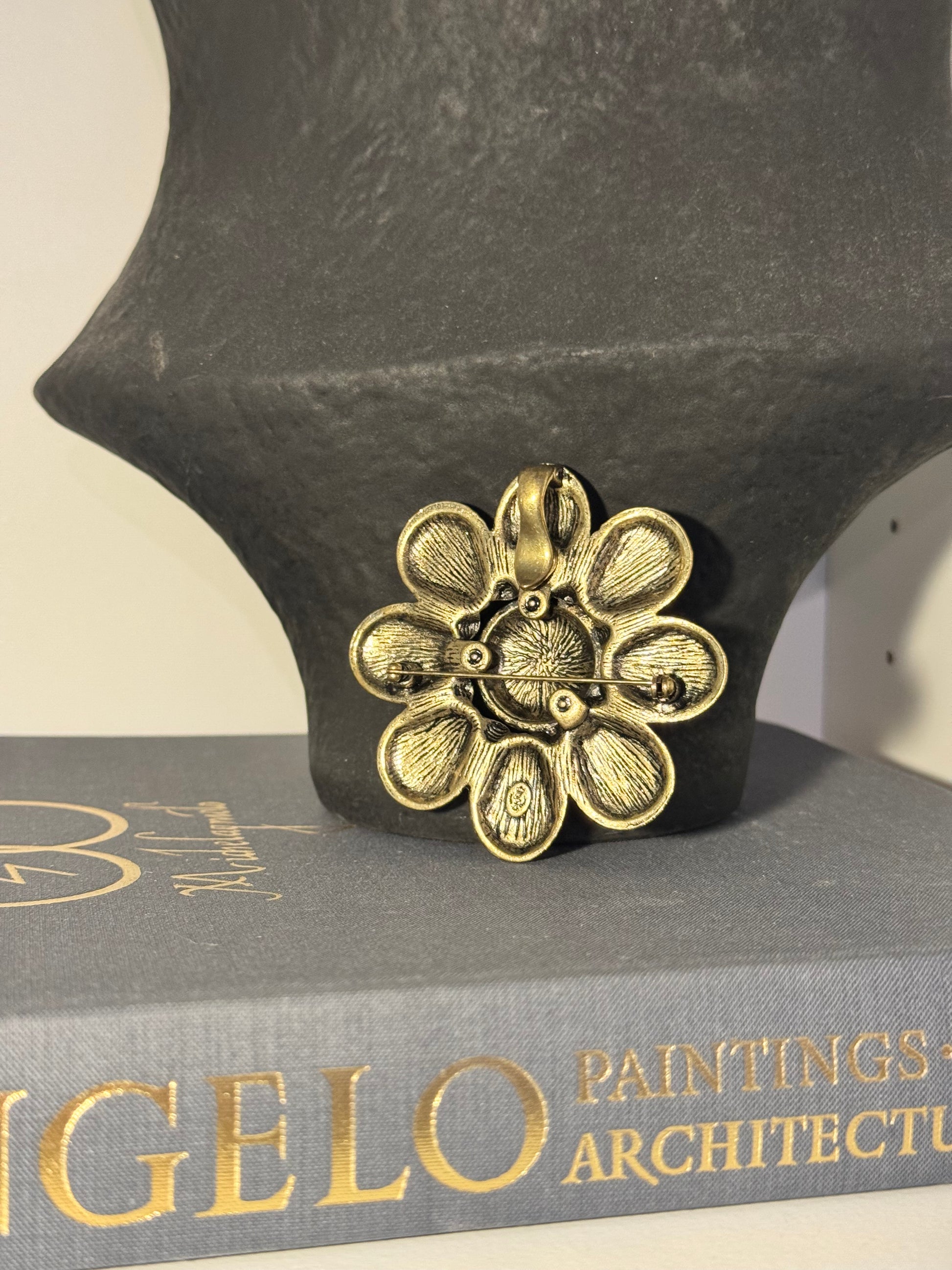 Brooch features a pin attachment as well as a loop hole to be worn as a pendant on your favorite chain.