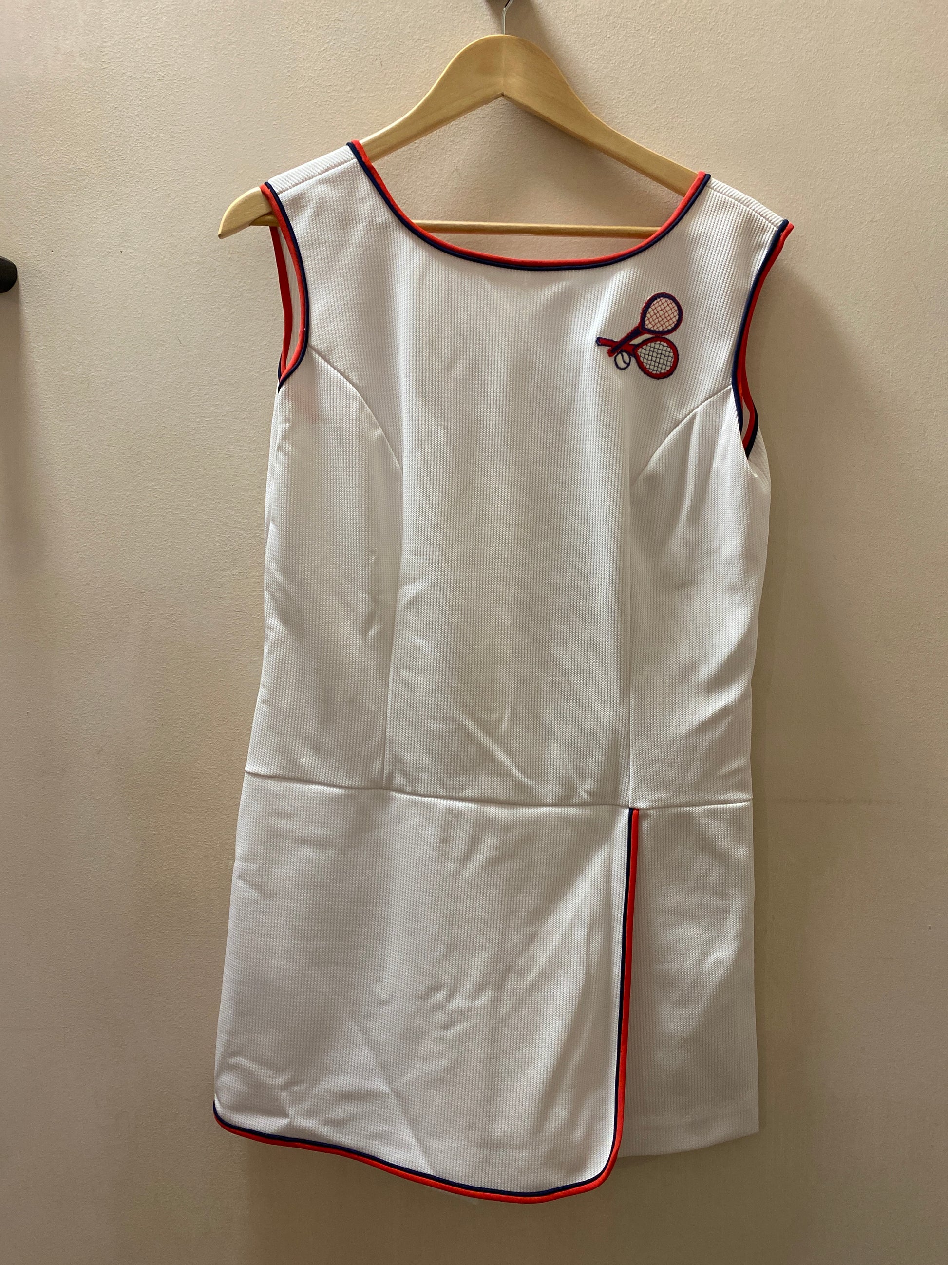 Style Features: Thick shoulder straps, embroidered tennis rackets & ball on left chest, dress style with built-in shorts, back zipper