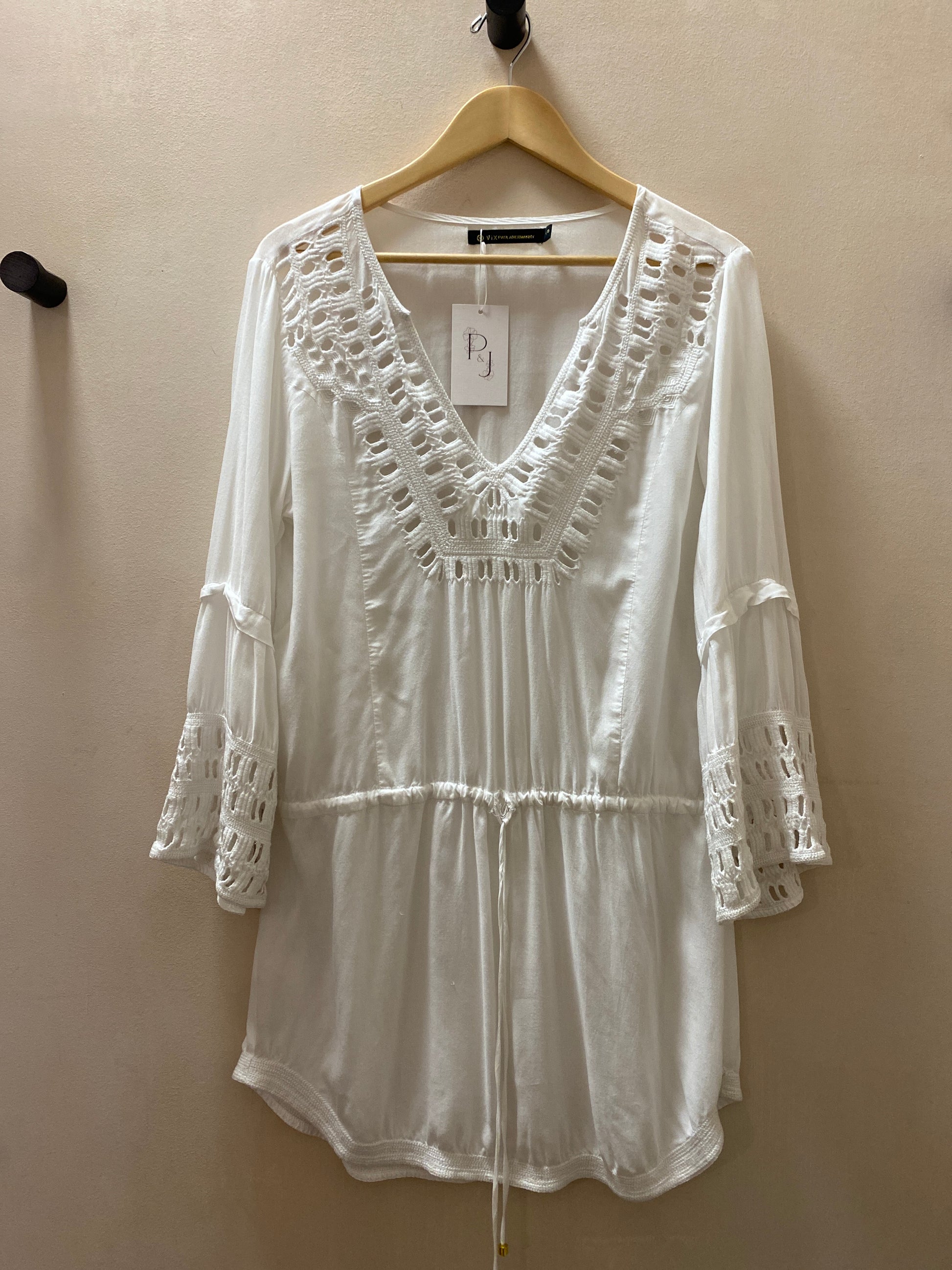 Style Features: ViX by Paula Hermanny brand, long sleeve, rounded v-neck, adjustable tie around waist for a more fitted style